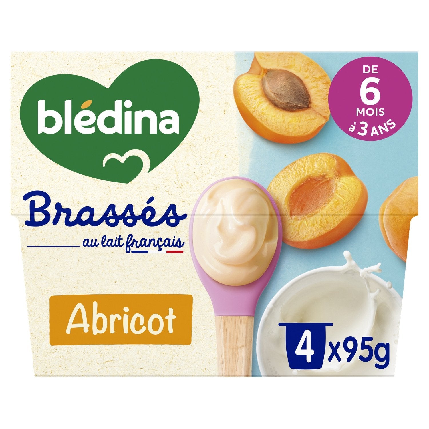 Ingredients: Rehydrated pasteurized fermented MILK 68% (MILK) - Water - Cream 8% (MILK) - Apricot puree 3.5% - Transformed corn starch - Banana puree - Natural flavoring - Thickener: Carob seed flour - Acidifier: Citric acid - Emulsifier: Rapeseed monodiglycerides - Ferrous lactate.