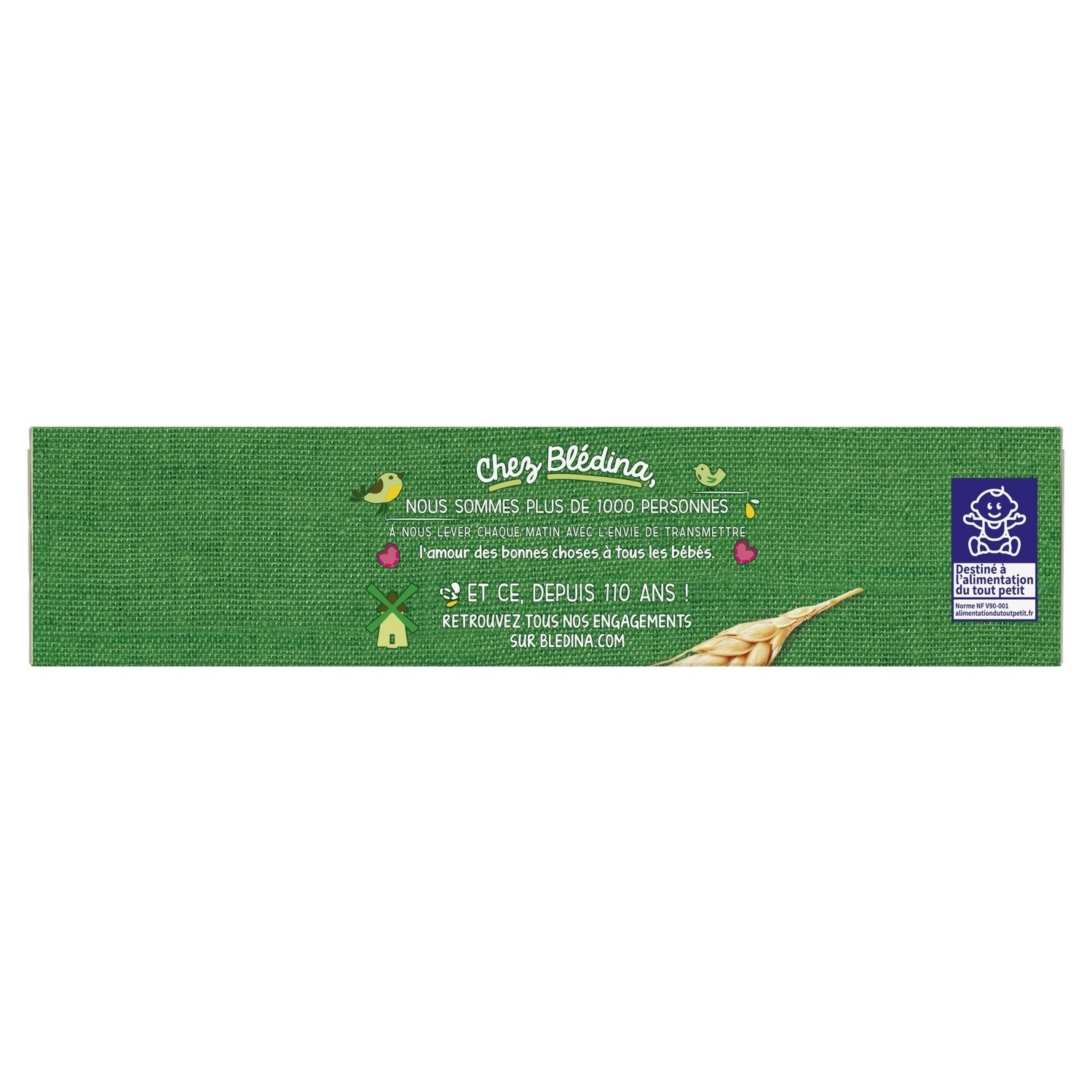 Experts in food diversification for over 100 years, Blédina is here to help you with all your baby's meals. Our mission? To awaken their curiosity about eating the right food, thanks to over 250 recipes designed by nutritionists and perfectly adapted to their needs. From 10 months, BLEDINA biscuits specially designed for babies for a delicious and suitable breakfast or snack. A firm texture that melts in the mouth, suitable for the first teeth. Ideal shape for their little hands. Practical format: 6 bags of 4 biscuits to take them everywhere. Is baby ready? You can give this biscuit to your baby if they: can sit up unaided in their high chair and eat dishes with small pieces and eat a piece of bread and already have two teeth. Caution: Your baby should always be sitting upright and under constant adult supervision.