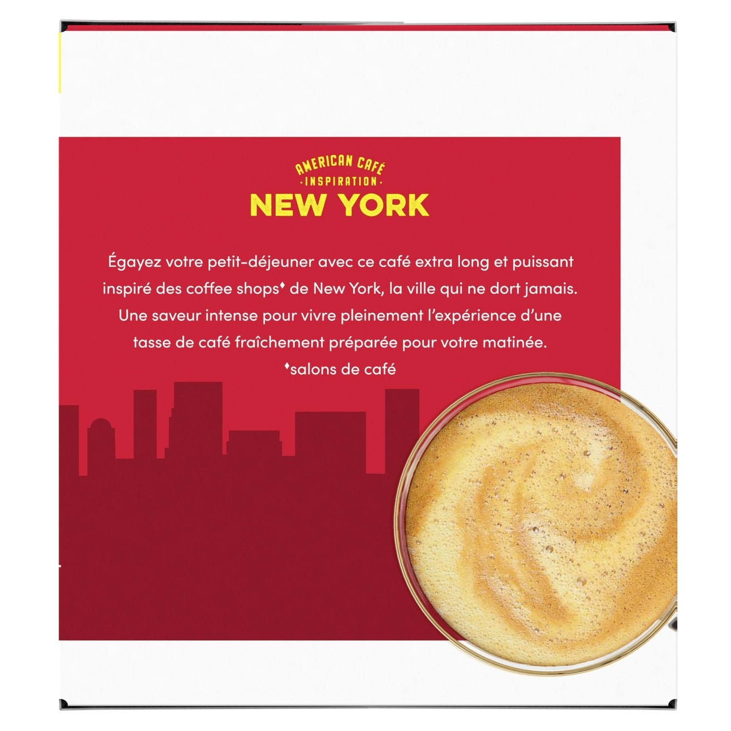 Liven up your breakfast with this extra long and powerful coffee inspired by the coffee shops* of New York, the city that never sleeps.*coffee shops,A bold, full-bodied profile and an intense flavor to fully experience a freshly brewed cup of coffee for your morning. ,Specially sized box of 18 capsules designed for NESCAFÉ Dolce Gusto machines (18 cups 230/300ml).,Our coffees are harvested from farms that apply more responsible environmental and social practices.