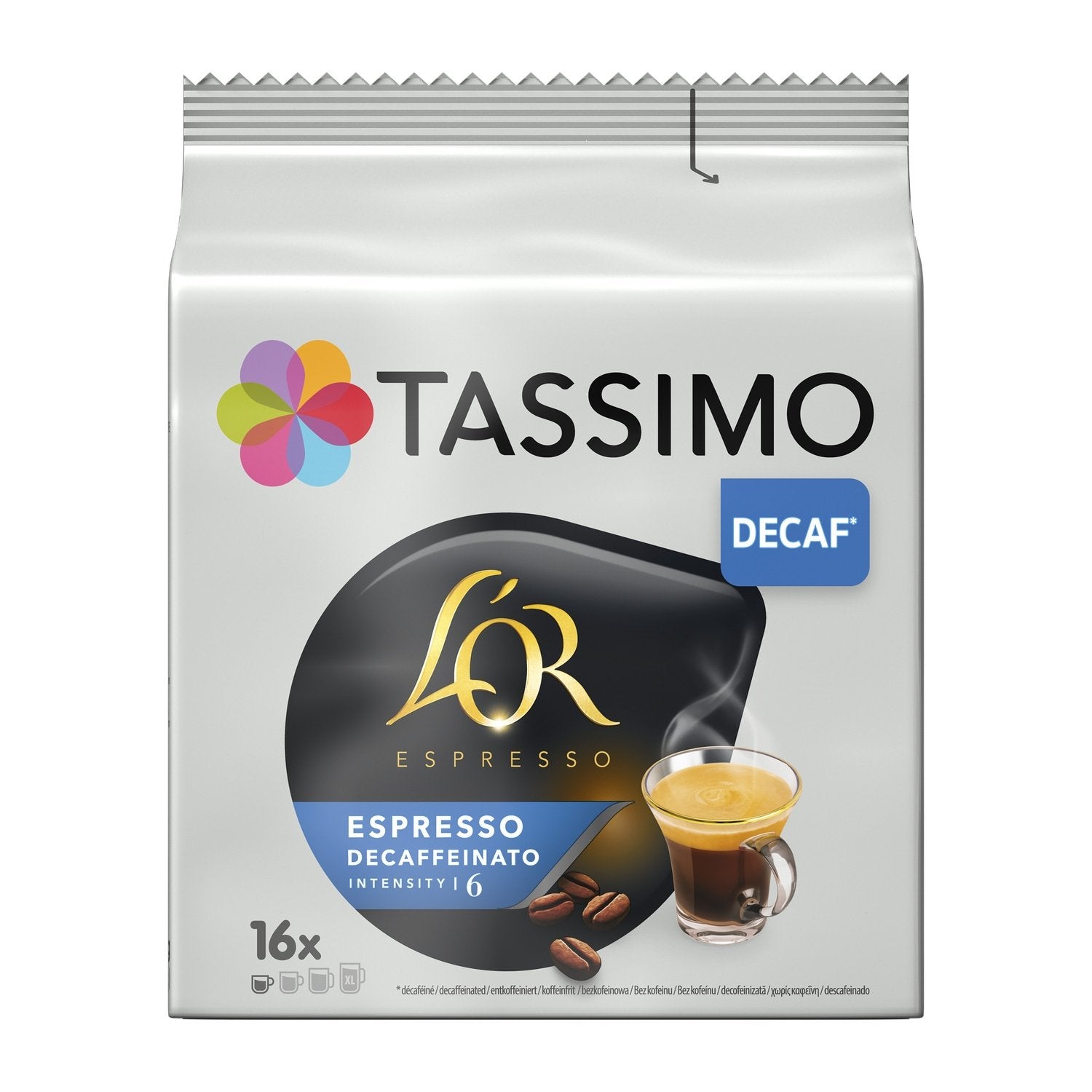 Discover TASSIMO L'OR Decaf Espresso. The rich aromas are just the start of this captivating decaffeinated espresso, punctuated by tangy notes. For a caffeine-free experience at any time of day. Strength 4. Our TASSIMO coffees are made from unique blends of Arabica and Robusta coffee beans. Pods compatible with your TASSIMO® machine. Your TASSIMO coffee maker…