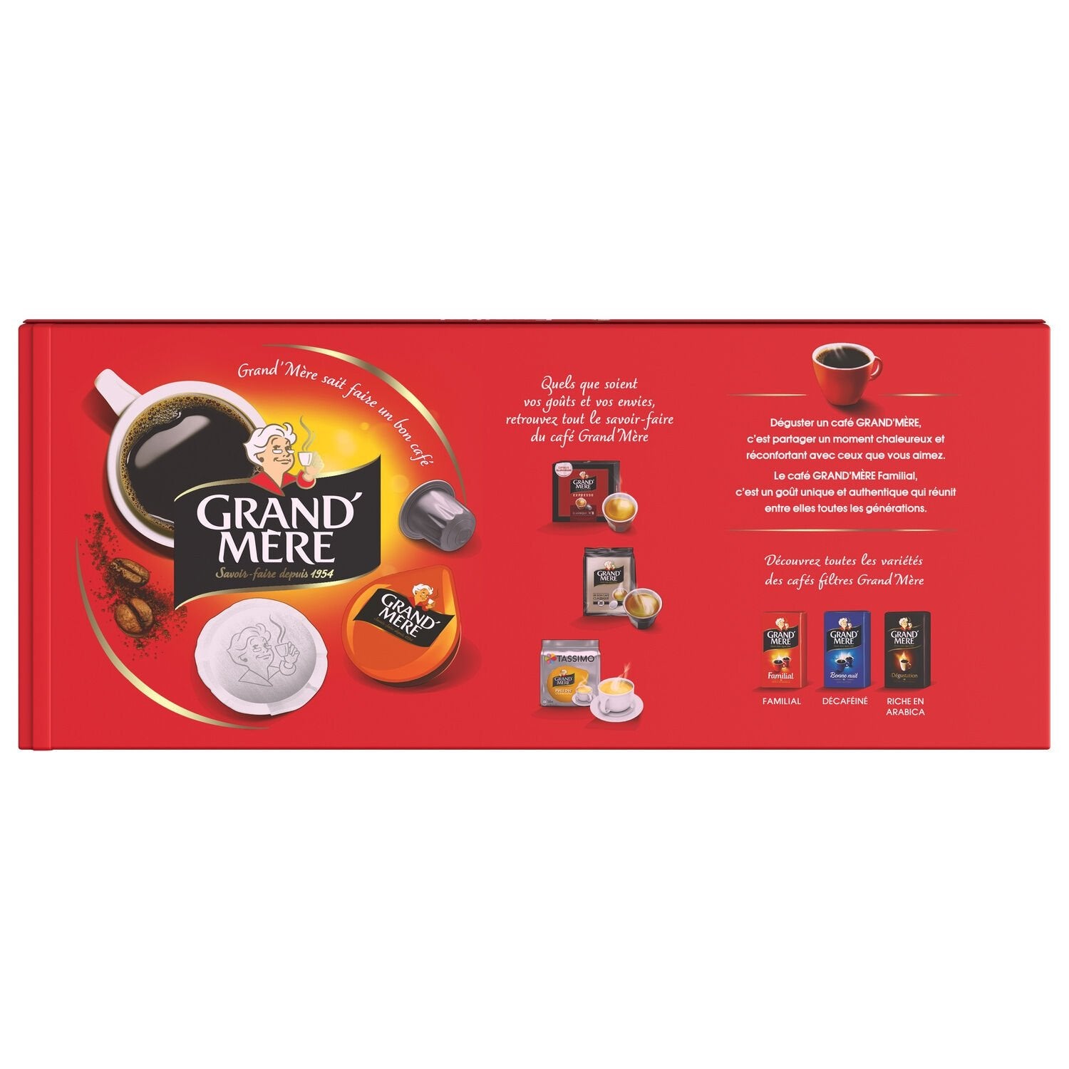 Grand Mère Familial coffee is the comforting flavor of the traditional recipe created at the original grocery store on rue Pierre Motte in Roubaix in 1954. Robusta beans roasted to the core for a full-bodied coffee with a generous taste. Pack of 4 resealable 250g packs, or 1 kilo, of ground coffee. Share with your loved ones using your filter, French press, or Italian-style coffee maker. Whether you like it black, hazelnut, or with milk, long or strong, for breakfast or for a break during the day, ground coffee for filter coffee makers is the ideal size for sharing and varying your pleasures.