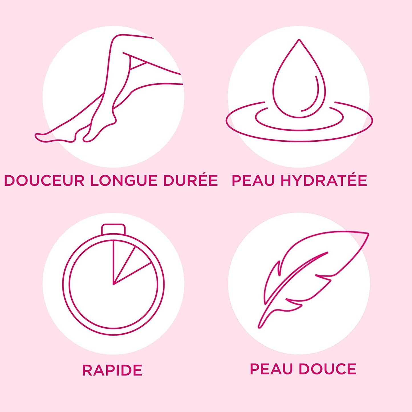 Discover the Hair Removal Mist that eliminates hair in just 5 minutes. Its formula works close to the root to remove even the shortest hairs. In addition to hydrating your skin for up to 24 hours*, its fragrance technology is specially designed to eliminate any unpleasant cream odor. It comes with a double-sided sponge (one soft side for applying the cream, and one exfoliating side for removing hair and cream) to leave your skin feeling smooth.