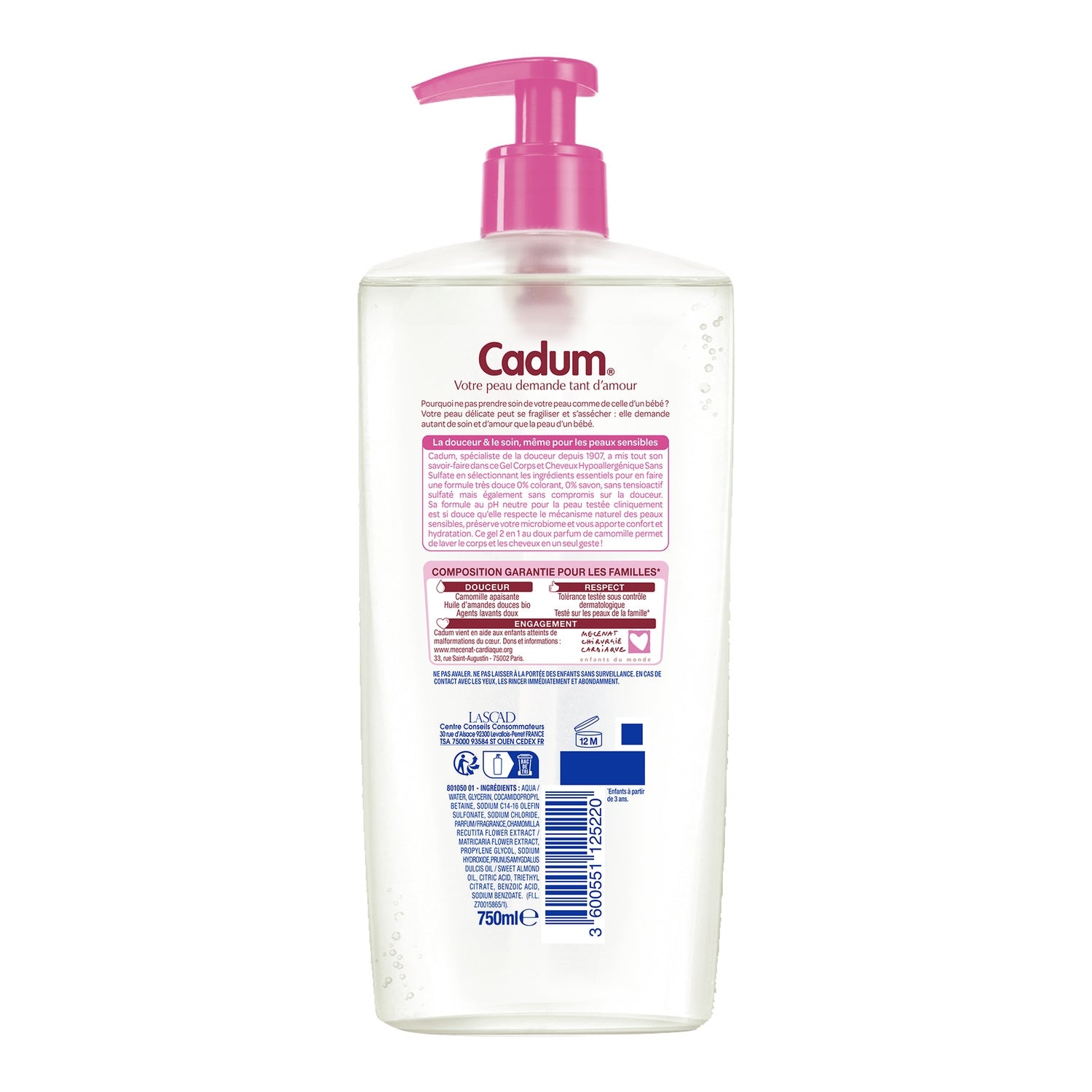 Cadum Hypoallergenic Body and Hair Gel Sulfate-Free Chamomile 750ml Preserves your microbiome and brings you comfort and hydration.