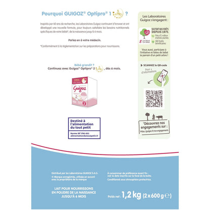 Why Guigoz® Optipro® (5HMO logo) 1? Inspired by 60 years of research, Guigoz Laboratories continues to innovate and has developed a formula to always meet the specific nutritional needs of your baby*, from birth to 6 months. *In accordance with regulations on infant formula. Talk to your doctor.