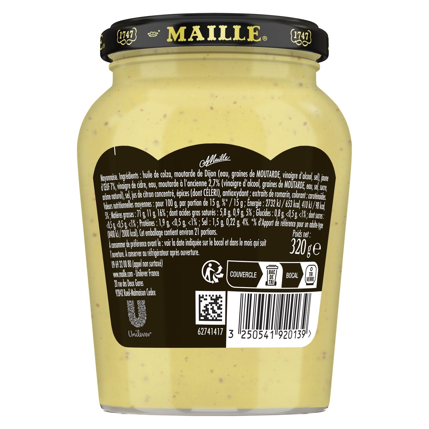 Maille Fins Gourmets Qualité Traiteur mayonnaise is a refined mayonnaise recipe subtly enhanced with a hint of Old-Fashioned Mustard. Its generous and creamy texture will perfectly complement carrot sticks, cucumbers, a few cabbage florets, or deviled eggs. For nearly 270 years of creative tradition and expertise, Maison Maille has been driven by a passion for exploring flavors and developing their culinary potential. Founded by Antoine-Claude Maille, a master vinegar maker, he opened his first condiment shop in Paris in 1747, where you can discover the richness of his flavored mustards. He then became the official supplier to the court of King Louis XV and thus rose to fame. Heirs to a creativity cultivated for nearly 3 centuries, the chefs of Maison Maille design each recipe as a work of culinary art. Their obsession: exploring, selecting, and combining the best ingredients to bring their extra soul to each recipe. The Maille condiment is the touch that awakens and reveals the beauty of a dish. A touch of creativity that heightens the taste, increases the pleasure, and satisfies the most demanding gourmets… Maille brand products invite you on a journey into the world of flavors. With their passengers of choice: know-how, passion for detail, the art of nuance, and refinement. For an immersive experience in the Maille universe, visit our stores in Paris, Dijon, and Bordeaux. Discover our recipes at www.maille.com.