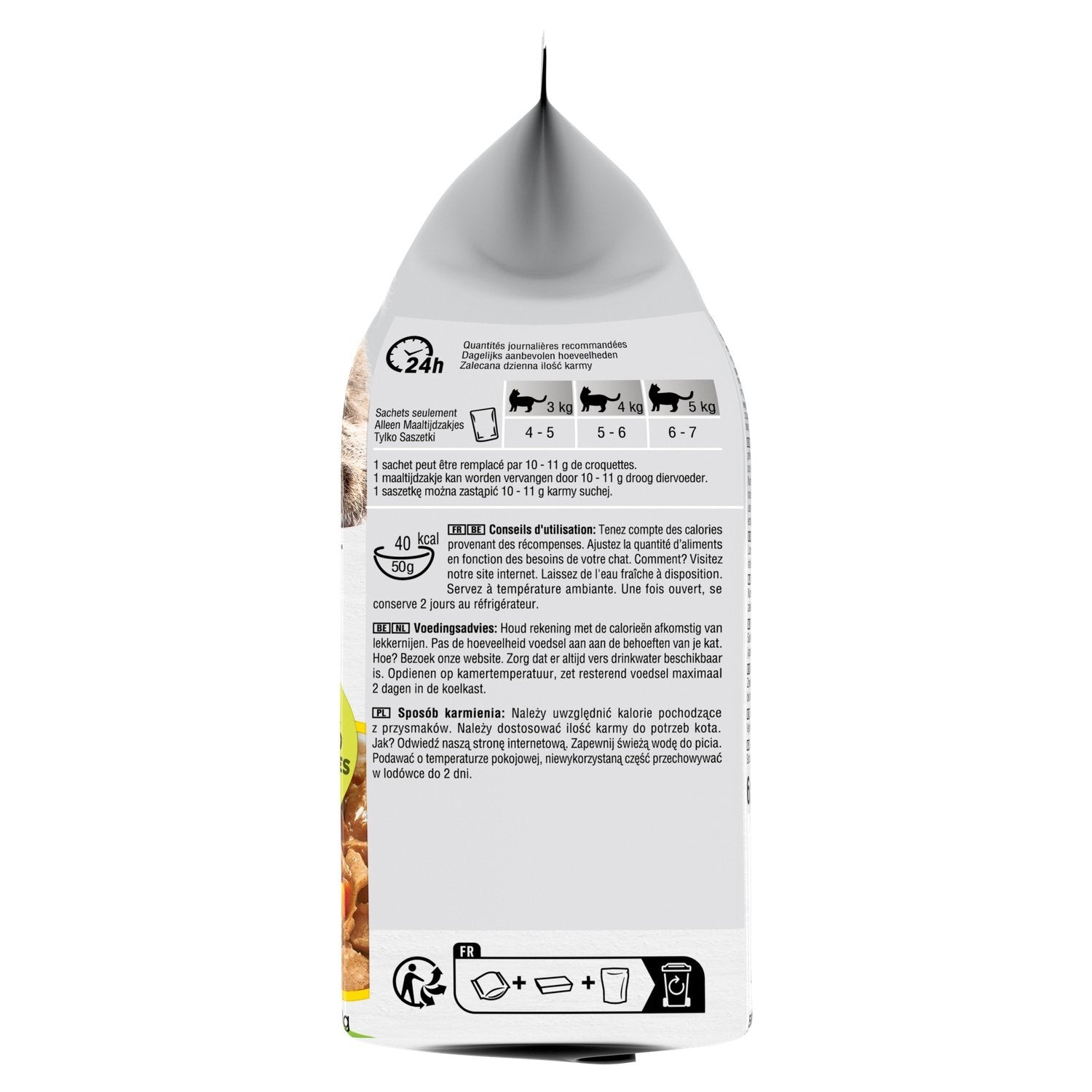 • Complete nutrition made with natural ingredients* for sterilized adult cats • Freshness pouches 2 varieties with 95% animal protein! • Grain-free and no added artificial preservatives • With chicory extract, a natural source of prebiotics, to contribute to the proper functioning of the intestine • With yeast, a natural source of B vitamins which contribute to your cat's vitality