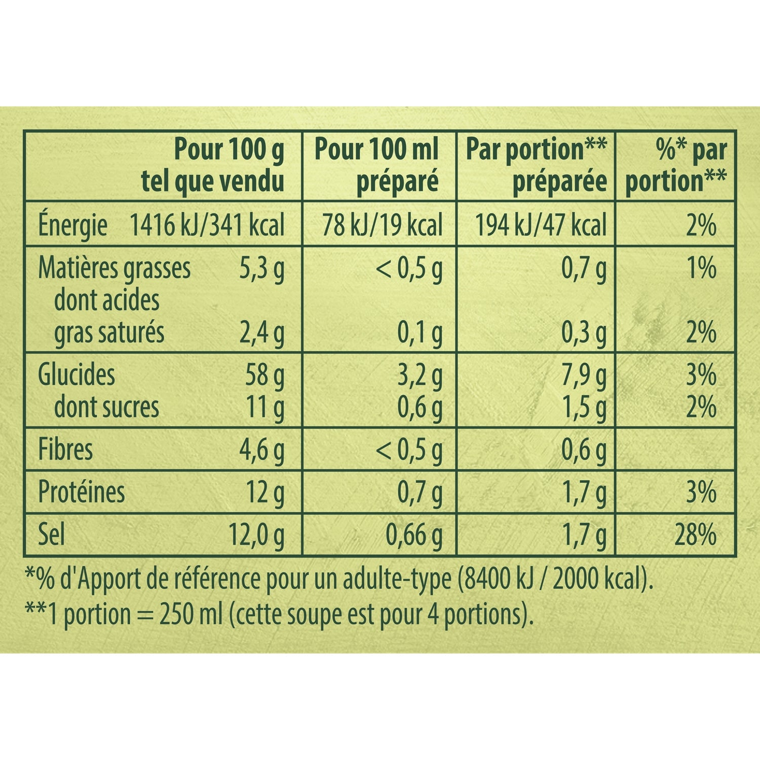 salt: 12 g / 100 g