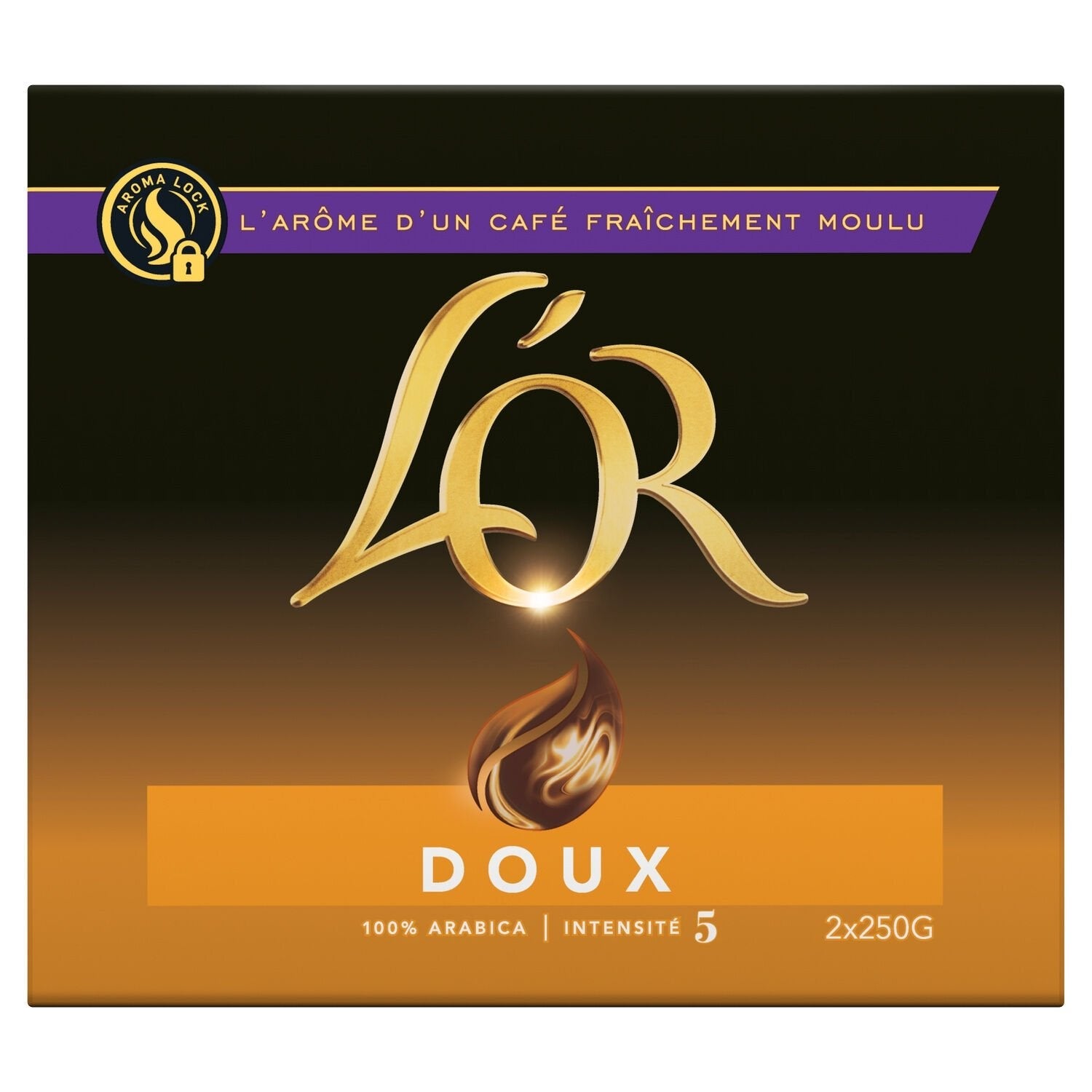 L'OR Doux est un café moulu 100% arabica, au goût légèrement fruité. C'est grâce à la torréfaction lente à cœur de ses grains que L'OR Doux vous révèle des arômes gourmands et délicats. Paquet de 500 grammes de café moulu. Niveau d'intensité 5 100% torréfié en France, ce café est mis en sachet directement après la torréfaction. La valve fraicheur Aromal Lock permet de refermer le sachet en conservant le goût et les arômes intenses du café L'OR. Sans doute le meilleur café du monde. Le café moulu pour cafetière filtre est idéal pour partager un bon café en famille ou entre amis. Que vous l'aimiez noir, noisette ou au lait, allongé ou au format expresso, chacun y trouvera son bonheur.
