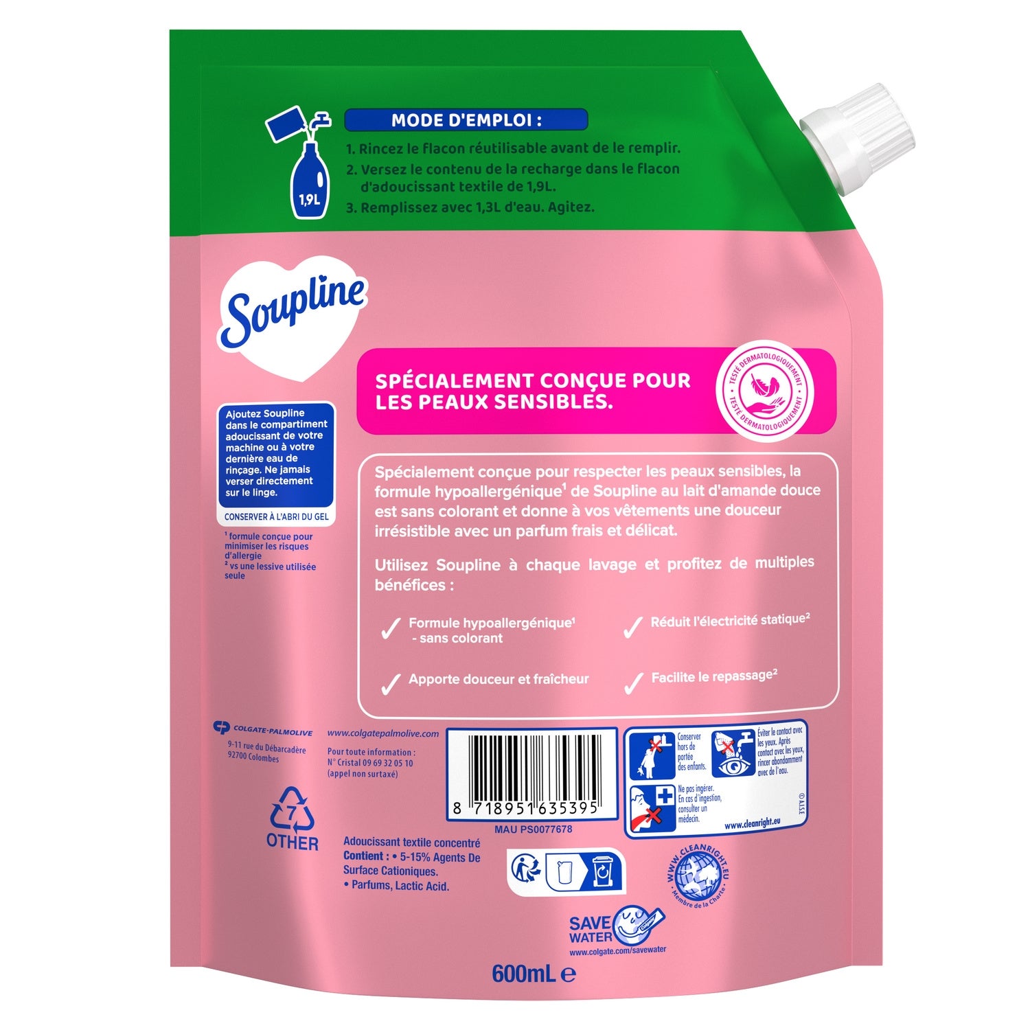 Soupline Eco-Recharge Adoucissant à diluer Hypoallergénique sans parfum 600ml