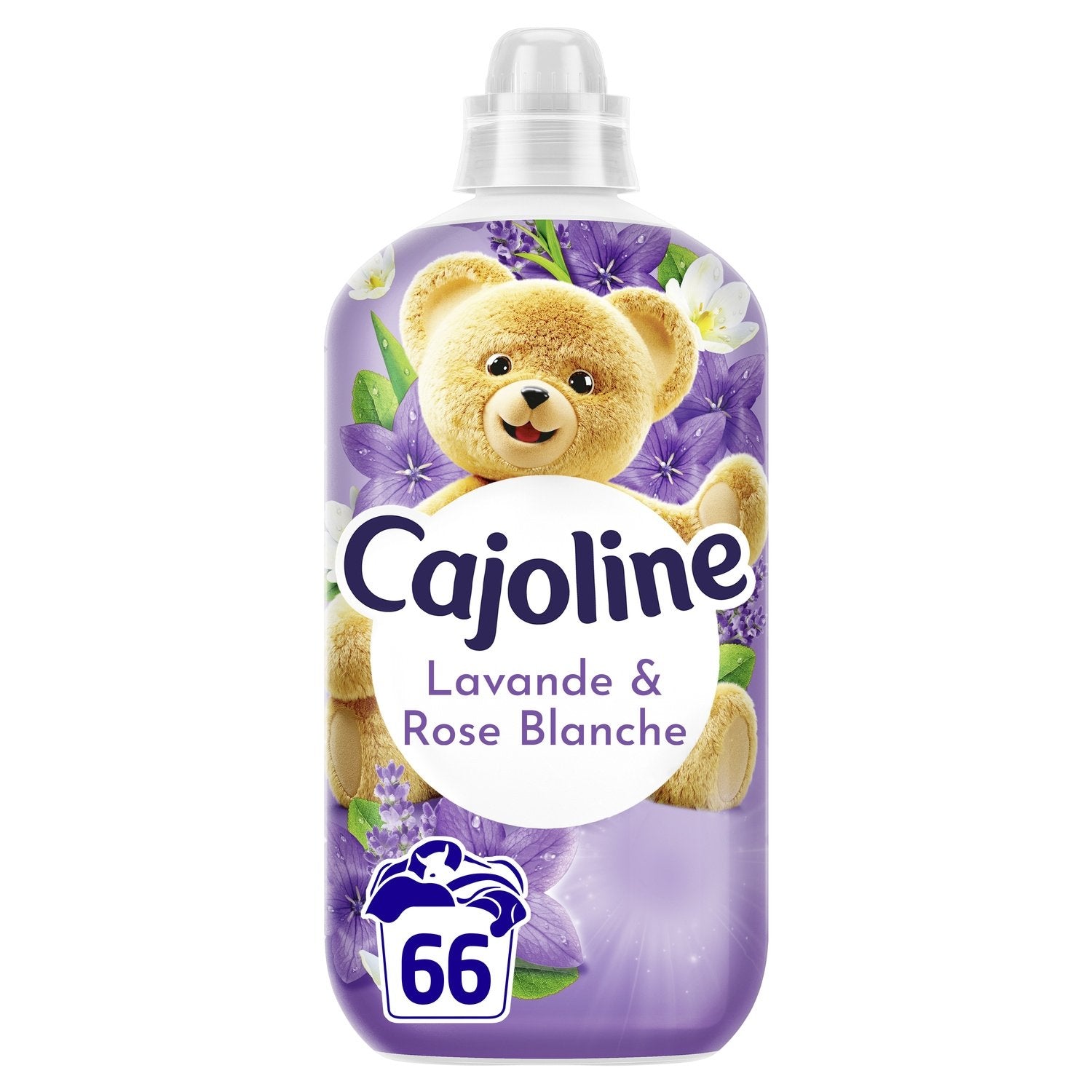 Découvrez la nouvelle formule de Cajoline Lavande & Rose Blanche 66 Lavages pour 100 jours de parfum et fraîcheur¹ garantis.,La formule de cet adoucissant est active même à froid, avec des ingrédients d'origine végétale².,Développé avec des experts parfumeurs et doté de la technologie Activation-Parfum, notre adoucissant garantit à votre linge un parfum frais et floral et une douceur exceptionnelle.,Cajoline Créations enveloppe vos textiles d'une douceur exceptionnelle et préserve les fibres, pour des vêtements qui durent longtemps !,Versez le dosage recommandé dans le bac adoucissant après avoir mis votre lessive habituelle. Ajoutez le booster de parfum Cajoline Elixir pour de l'extra parfum.,Découvrez la nouvelle génération de fraîcheur avec Cajoline ! Avec 50 ans d'expertise, l'ourson Cajoline apporte à votre linge toute la douceur et la fraîcheur qu'il mérite.