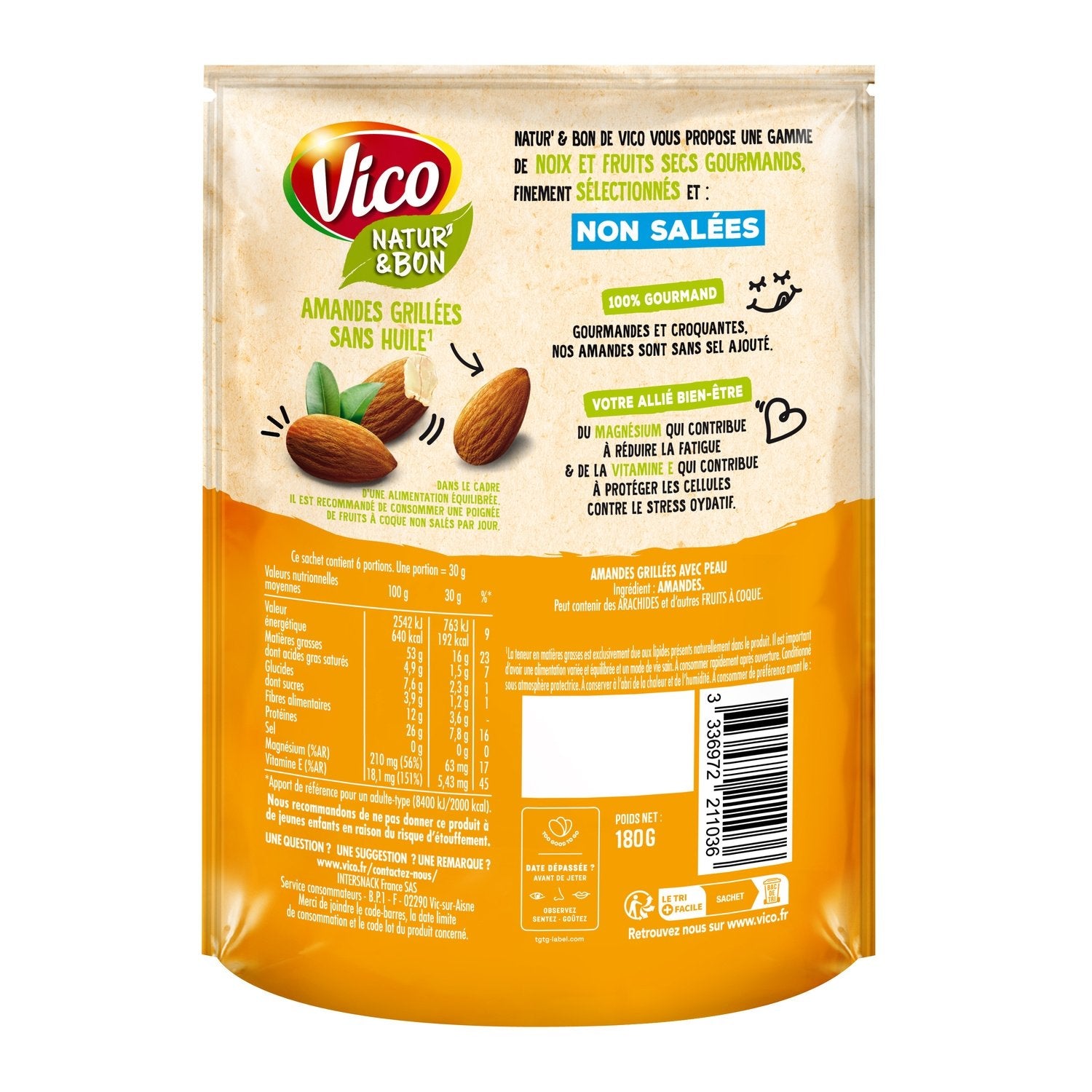 Sans sel ajouté*, sans huile ajoutée, ni conservateurs, ces amandes sont riches en magnésium et vitamine E. De la vitamine E qui contribue à protéger les cellules contre le stress oxydatif et du magnésium qui contribue à réduire la fatigue. *la teneur en sel est exclusivement due à la présence de sodium présent naturellement dans le produit ou la graine.