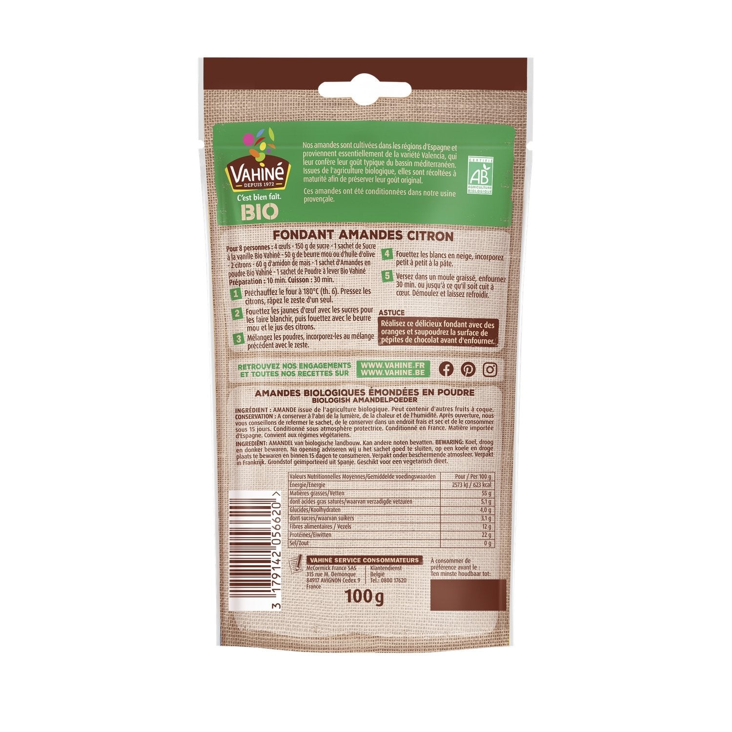 Des amandes en poudre 100% issues de l'agriculture biologique, avec un zip fraîcheur, conditionnées en France.