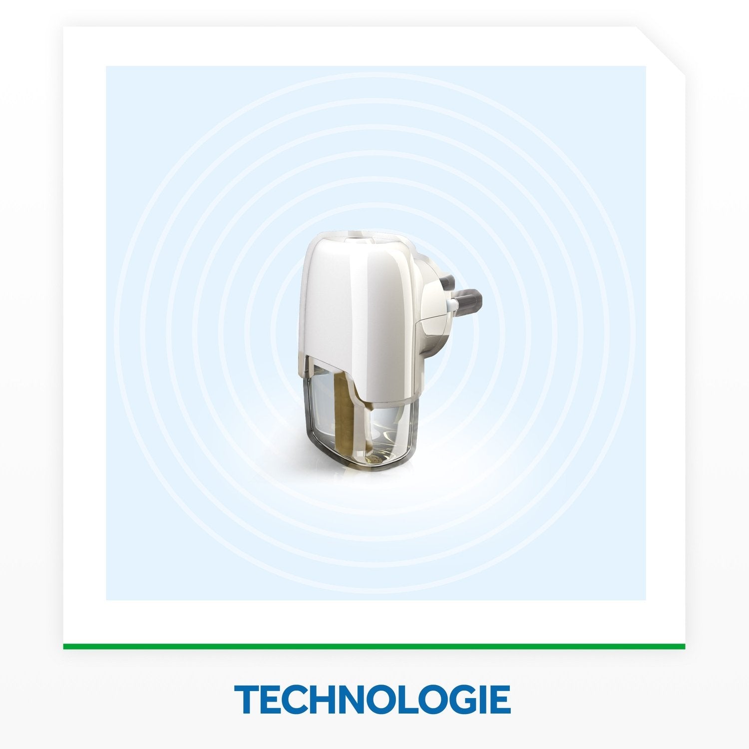 Protection contre les moustiques et moustiques tigres,Action continue prouvée jusqu'à 2x45 nuits de 8 heures,Efficace même les fenêtres légèrement ouvertes et les lumières allumées.,Bouteille avec ouverture sécurisée enfant.,Sans Parfum,Contient 1 diffuseur + 1 recharge