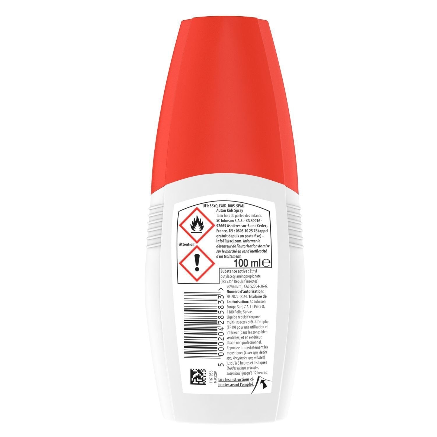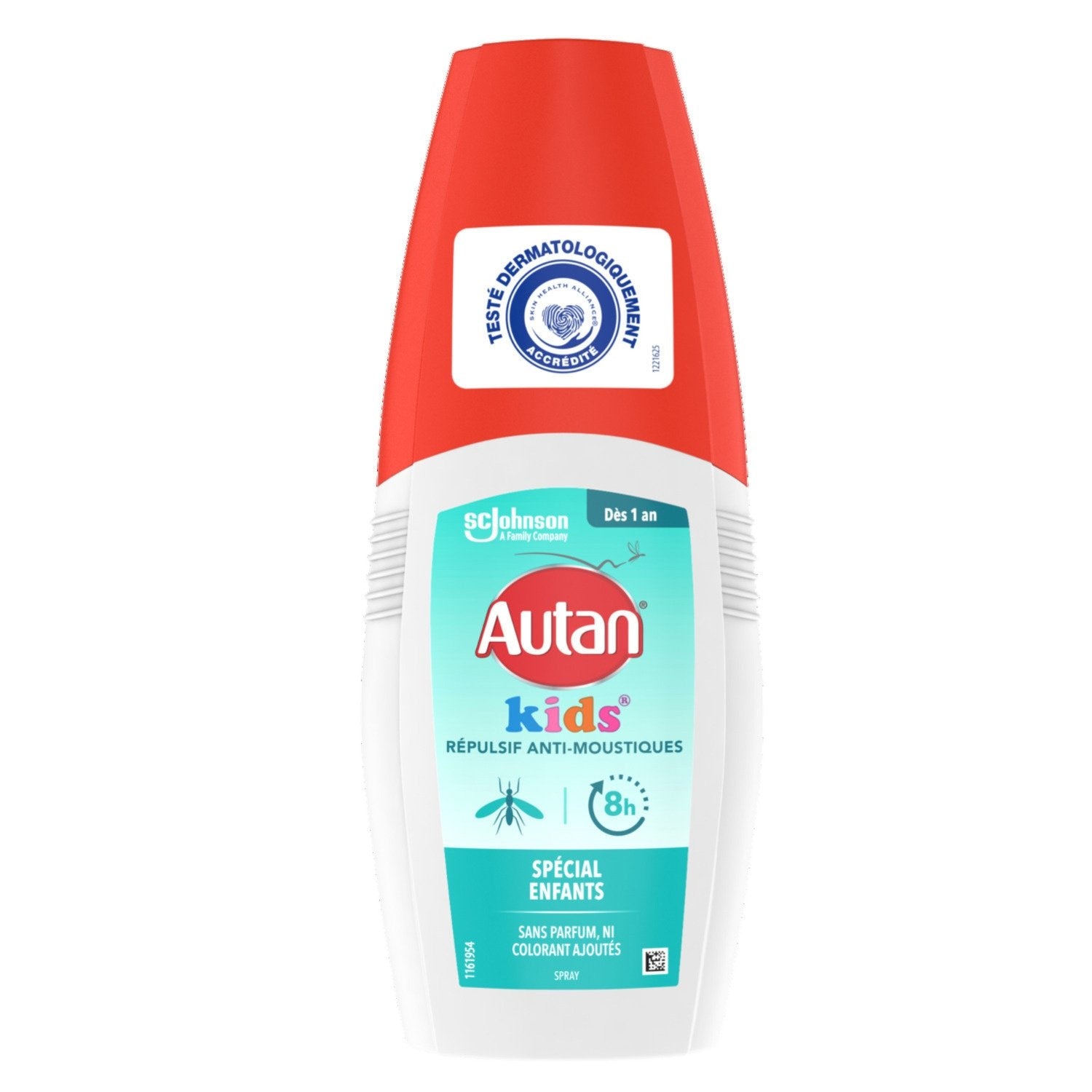 RÉPULSIF ANTI-MOUSTIQUES ET ANTI-TIQUES : Le spray Autan® Kids™ protège dès son application contre les moustiques et contre les tiques.,IDEAL POUR LES ENFANTS : Grâce à sa nouvelle formule avec l'ingrédient actif IR3535 reconnu par l'Organisation Mondiale de la Santé*, la lotion Autan® Kids™ permet de protéger votre enfant dès un an contre les moustiques et les tiques.,ADAPTÉ POUR LES PEAUX SENSIBLES : Testée dermatologiquement, le spray a été accréditée par l'organisme Skin Health Alliance (une accréditation dermatologique indépendante qui certifie les produits)., Sa formule ne contient pas de parfums ni de colorants.,APPLICATION FACILE : Son format spray permet une application facile sur la peau. Il peut être utilisé sur les adultes et sur les enfants dès 1 an.,Utilisez les produits répulsifs avec précaution. Avant toute utilisation, lisez l'étiquette et les informations concernant le produit. https://www.who.int/fr/news-room/fact-sheets/detail/chikungunya
