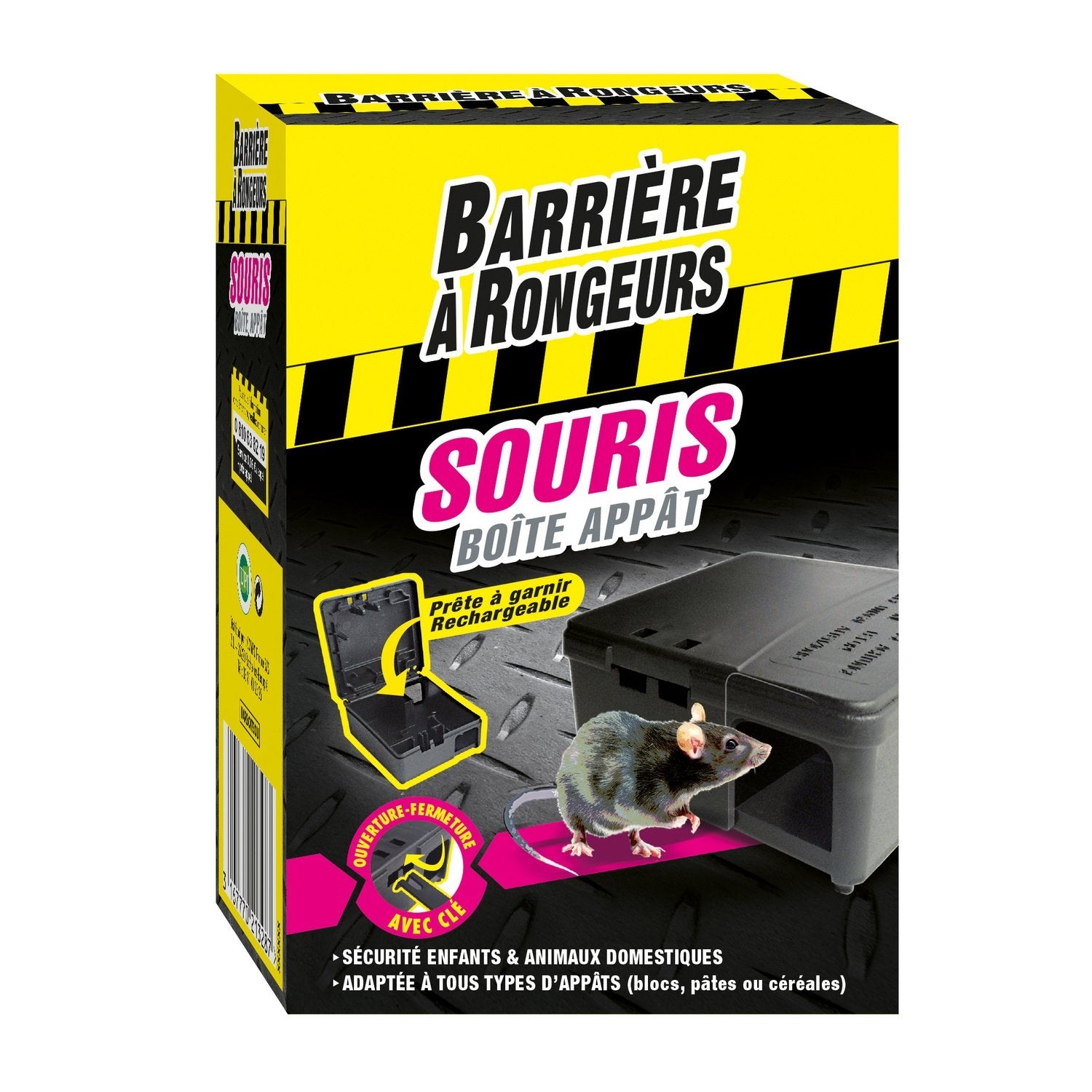 Boîte appât souris prête à garnir et rechargeable. Convient à tous types d'appâts : pâte, grains, blocs. Boîte sécurité enfants et animaux domestiques. Ouverture avec clé.
