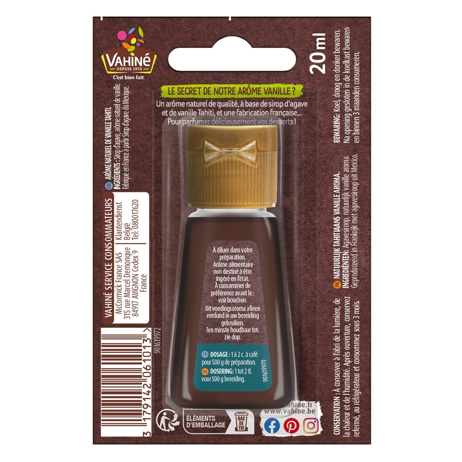 Le secret de notre arôme Vanille ?Un arôme naturel de qualité,à base de sirop d'agave et de vanille Tahiti,et une fabrication française,..Pour parfumer délicieusement vos desserts !