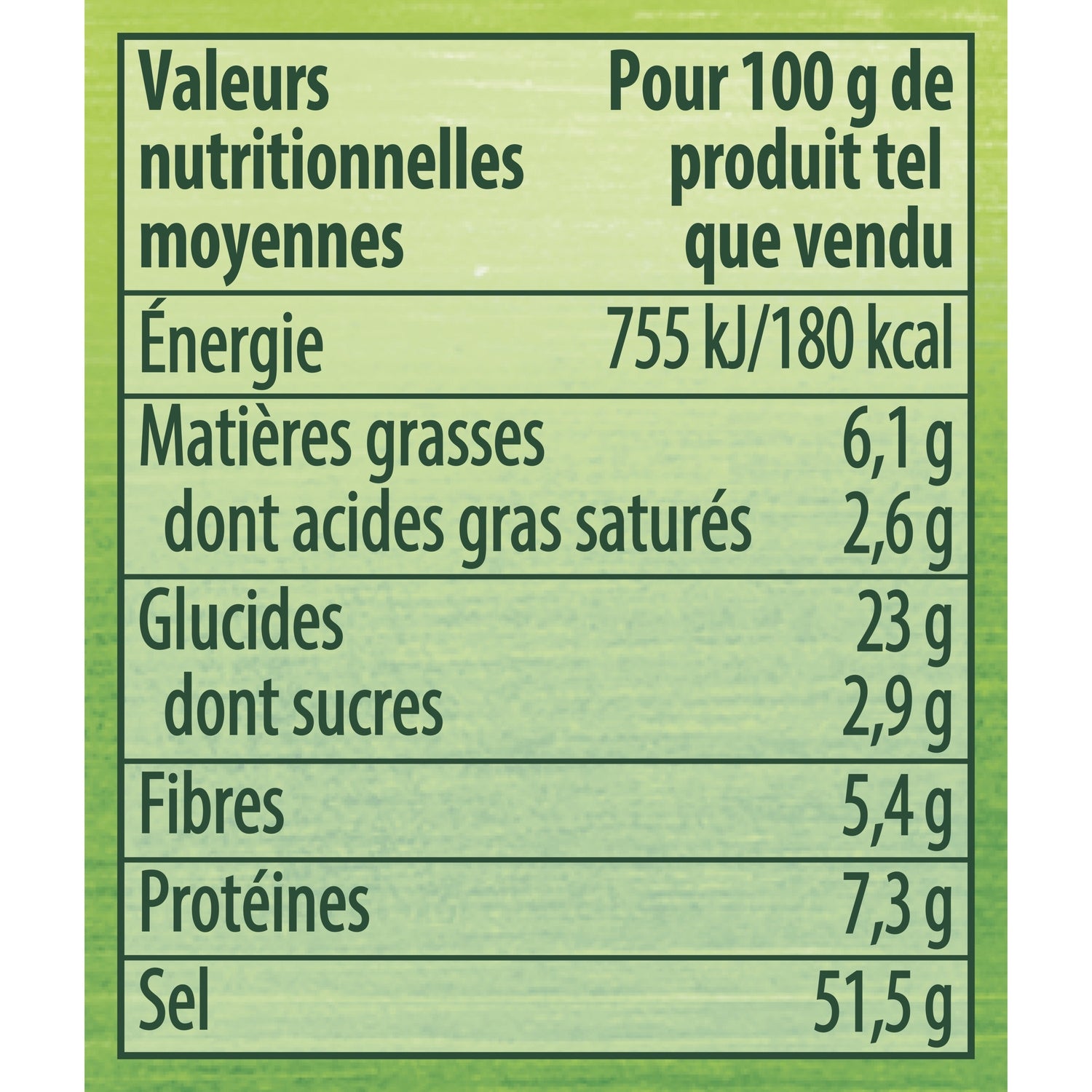 Les informations présentées (ingrédients, valeurs nutritionnelles, conseils d’utilisation, etc.) sont fournies à titre indicatif et peuvent varier selon les approvisionnements. Nous vous invitons à vérifier systématiquement les informations figurant sur l’emballage avant consommation. Photo non contractuelle – l’apparence, le conditionnement ou certains détails du produit peuvent différer de l’illustration. Le design de l'emballage est susceptible d’évoluer.