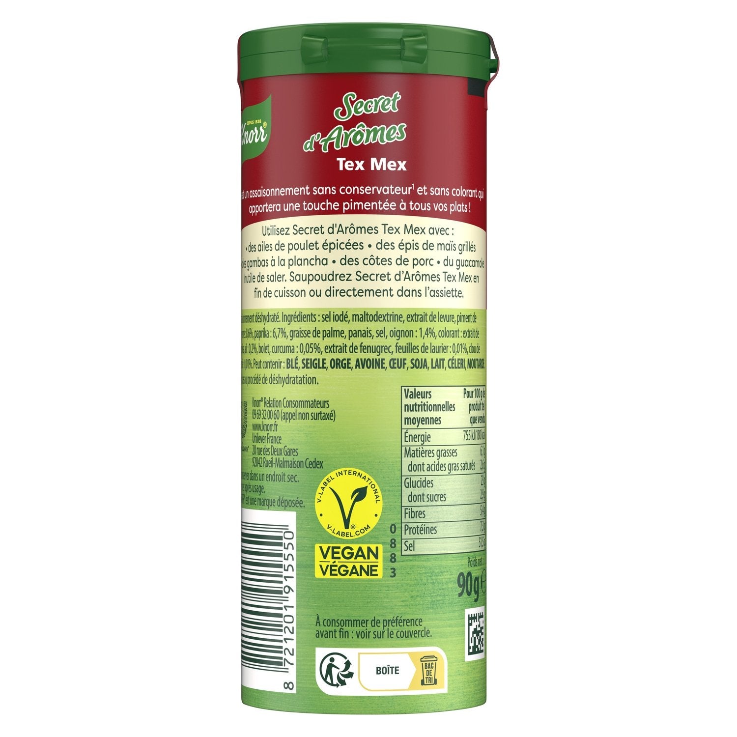 Tous champions du barbecue ! Édition limitée Secret d'Arômes UEFA WOMEN'S EURO 2025™, célébrant Knorr® comme partenaire officiel BBQ de l'UEFA WOMEN'S EURO 2025™.,Essayez le nouveau Knorr® Secret d'Arômes Tex Mex, un mélange savoureux de piment de Cayenne et de paprika qui apportera une touche venue d'ailleurs à vos plats !,Cet assaisonnement en poudre épicé est idéal pour relever les épis de maïs grillés, les ailes de poulet épicées, les gambas à la plancha, les côtes de porc et le guacamole.,Réveillez vos préparations en quelques minutes : saupoudrez Secret d'Arômes ® Tex Mex de Knorr ® en fin de cuisson ou directement dans l'assiette !,Cet assaisonnement en poudre est préparé sans conservateur et sans colorant pour un arôme authentique.,Découvrez également notre nouvel assaisonnement en poudre Knorr® Secret d'Arômes Duo Aromatique, une association d'ail et d'oignon qui s'adapte à toutes vos envies !