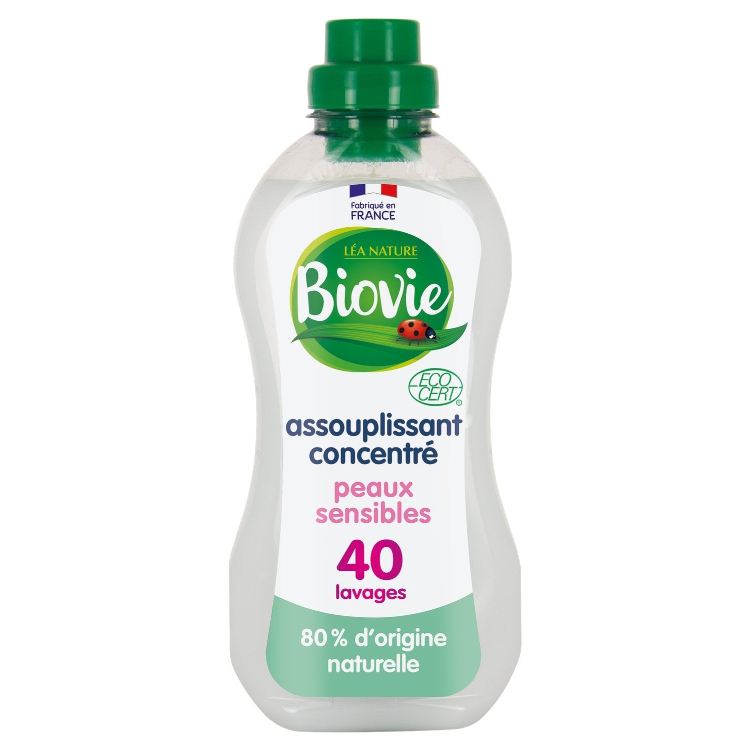 Biovie® vous propose son assouplissant concentré à l'aloe vera bio pour peaux sensibles, idéal pour adoucir et parfumer votre linge. Sa formule concentrée lui permet de réaliser 40 lavages avec seulement 1L de produit. L'assouplissant peaux sensibles Biovie® apportera la souplesse et la douceur nécessaire à votre linge tout en s'adaptant aux peaux sensibles. % colorant, parfum de synthèse, isothiazolinone 95% du total des ingrédients sont d'origine naturelle Adapté aux peaux sensibles Formule concentrée Certifié Ecocert Flacon recyclé et recycable Adapté aux peaux sensibles Dosage avec le bouchon Flacon 1L facile à transporter Flacon recyclé et recyclable Certifié Ecocert