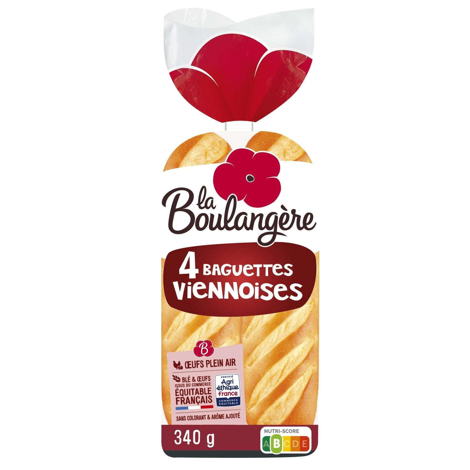 Les Baguettes Viennoises La Boulangère sont gourmandes et fondantes. Leur recette est élaborée avec de la farine de blé et des oeufs de plein air issus du commerce équitable français, sans colorant ni arôme ajouté. Elles sont idéales en tartines pour le petit-déjeuner ou en sandwich pour le déjeuner, grâce à leur format en long déjà fendu et leur goût peu sucré. Les Baguettes Viennoises La Boulangère, ultra pratiques pour le quotidien des familles.