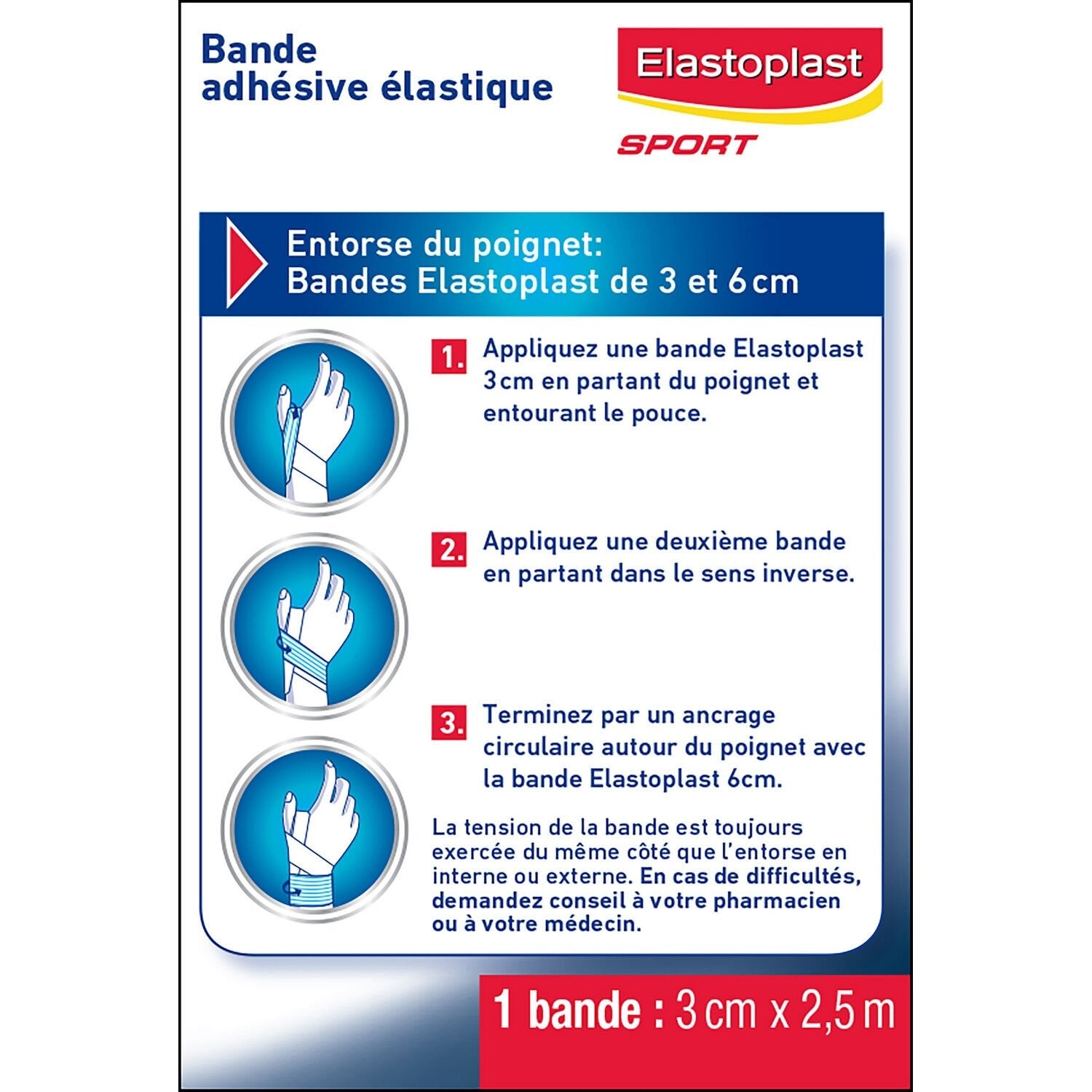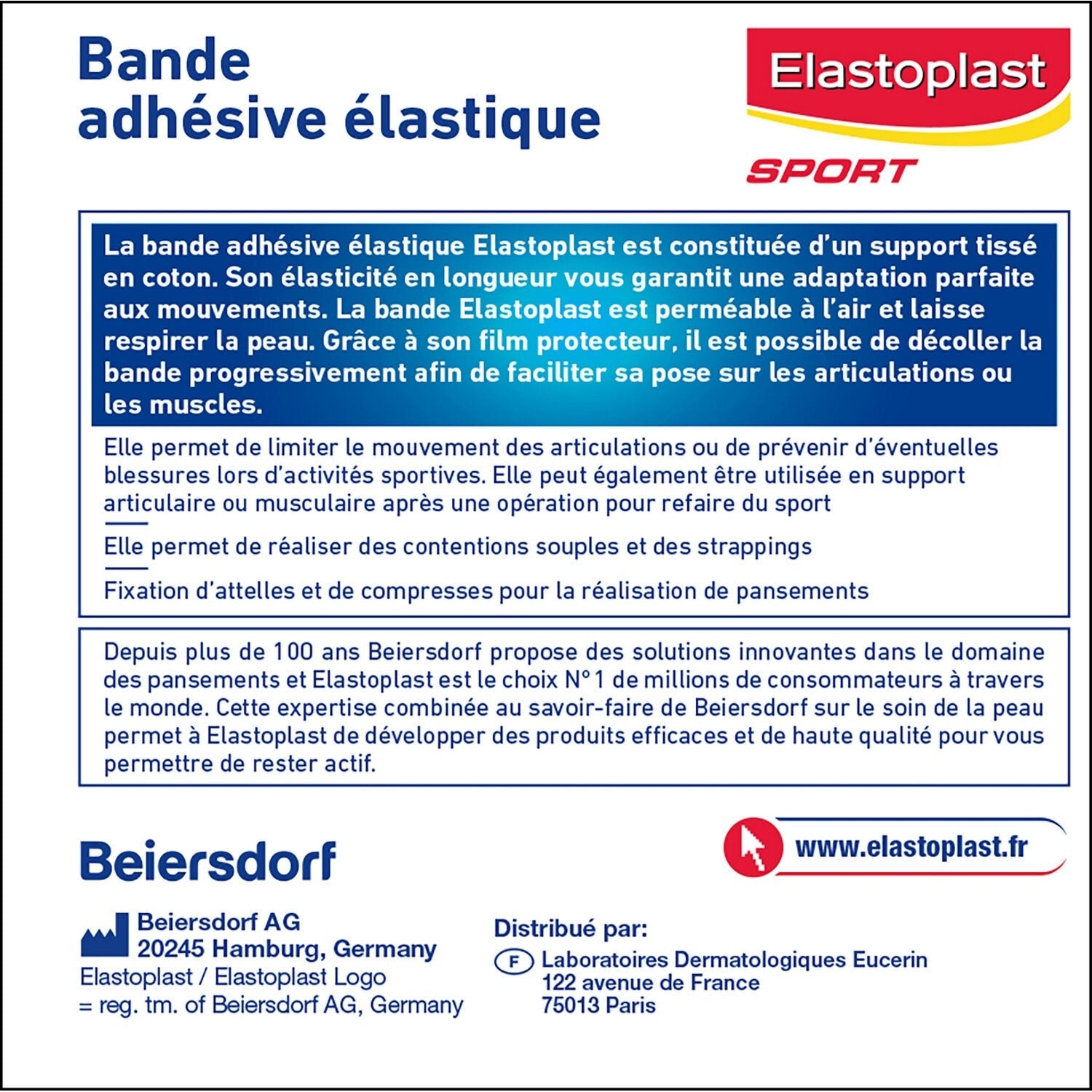 La bande Sport Elastoplast 3 cm x 2,5 m est perméable à l'air et laisse respirer la peau. Grâce à son film protecteur, il est possible de décoller la bande progressivement afin de faciliter sa pose sur les articulations ou les muscles. - Elle permet de réaliser des contentions souples et des strappings - Fixation d'attelles et de compresses pour la réalisation de pansements Les bandes Elastoplast existent également en bandes adhésives élastiques de 6, 8 et 10 cm.