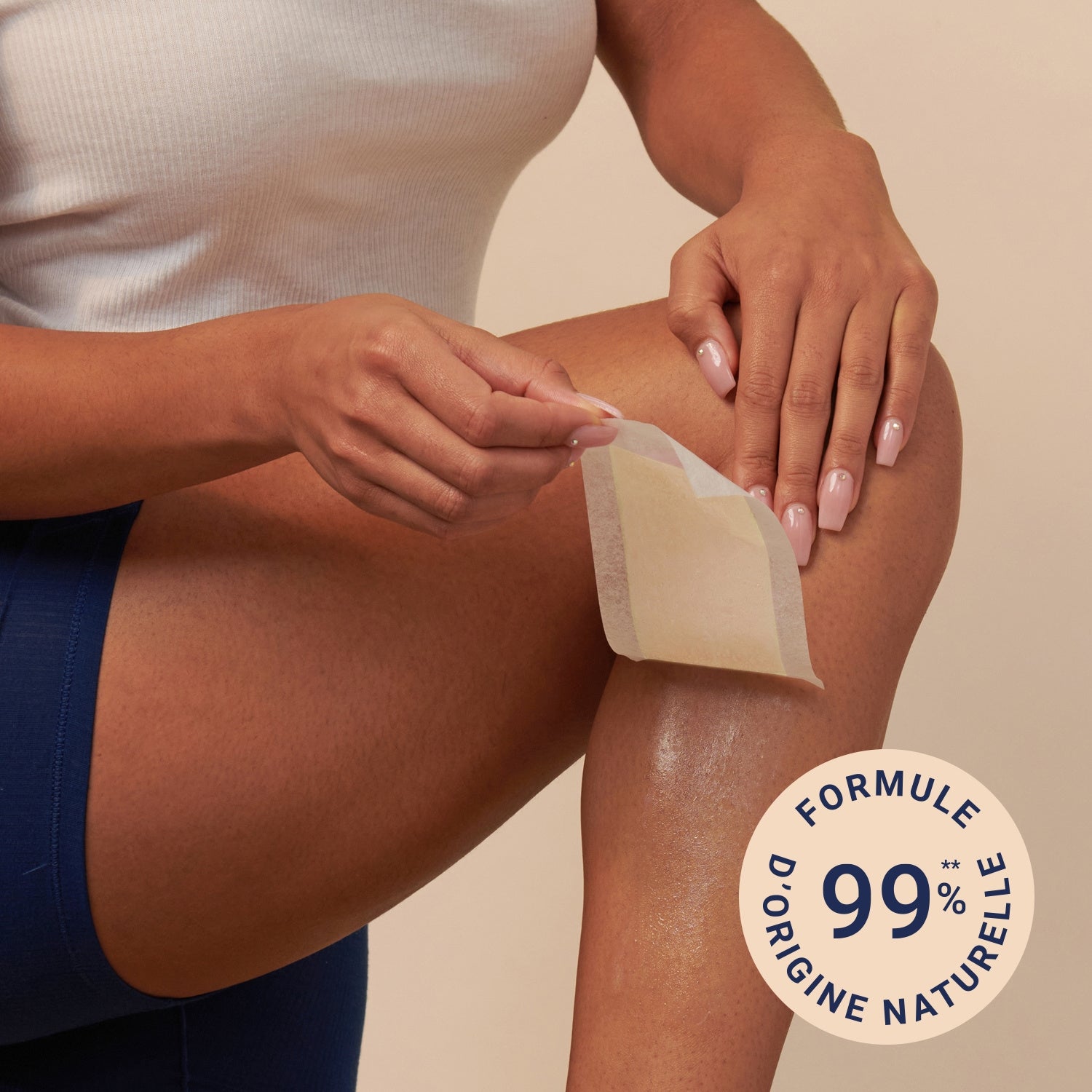BANDES DE CIRE FROIDE CORPS à l'huile de graines de fleurs de coton pour encore plus d'efficacité, de naturalité et de respect de la peau . 99% d'ingrédients d'origine naturelle