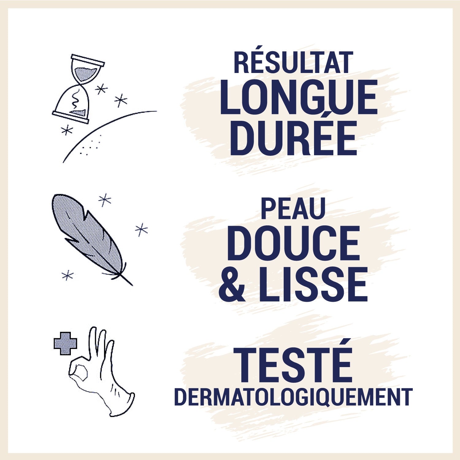 Un format Nomade hyper gourmand Technologie INSTANT Use. Plus besoin de frotter les bandes de cire entre ses mains avant de les séparer. Efficacité professionnelle sur poils courts (2 mm) Formule douce qui convient aux peaux sensibles. 1-ULTRA PRATIQUES grâce à leur format nomade. 2-ULTRA RAPIDES. 3- ULTRA EFFICACES UNE EFFICACITE MEME SUR LES POILS COURTS pour un résultat longue durée jusqu'à 4 semaines. UNE FORMULE DOUCE QUI CONVIENT AUX PEAUX SENSIBLES; Leur formule à base de résine d'origine naturelle est testée dermatologiquement et enrichie d'un cocktail végétal (lavande, camomille, romarin) aux vertus adoucissantes et apaisantes. UN PARFUM ULTRA GOURMAND A LA COCO