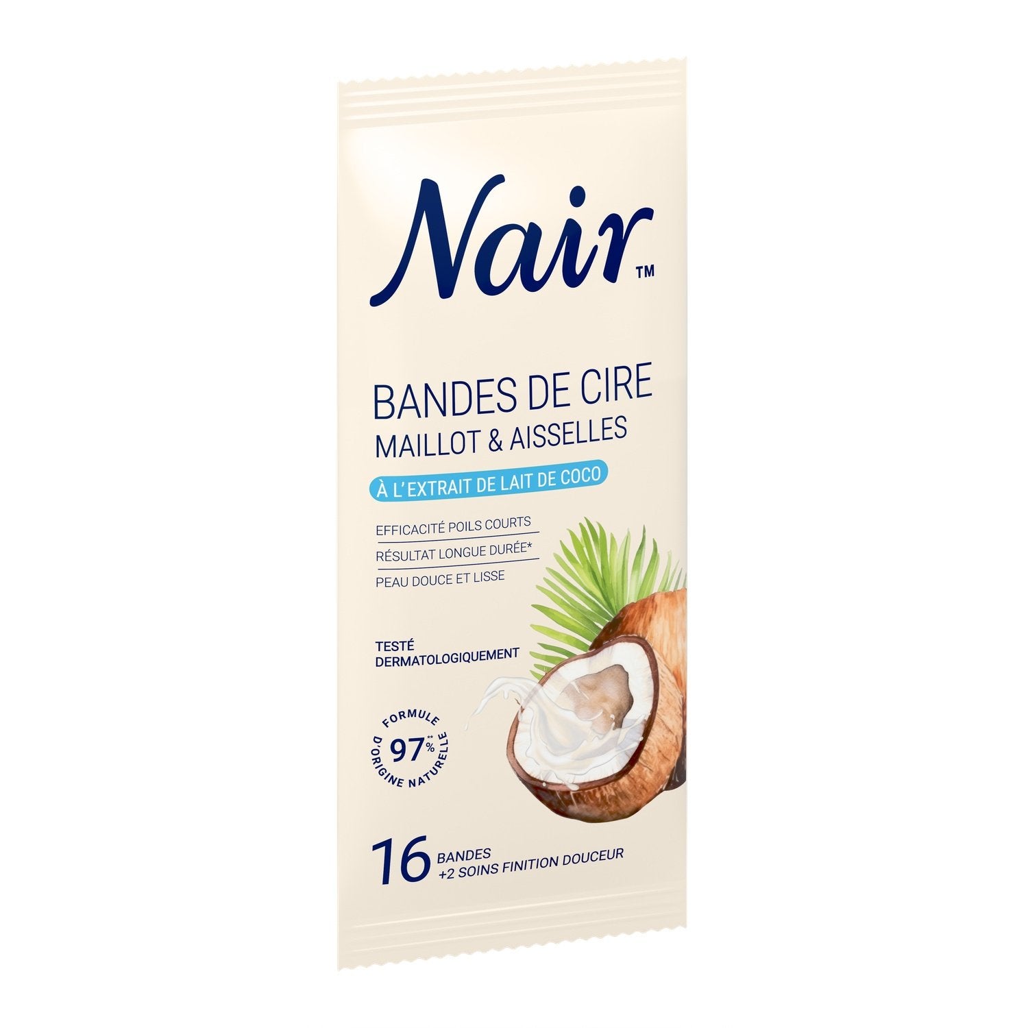 Bandes de Cire Froide Maillot Aisselles Peau Sensible Lait de Coco NAIR