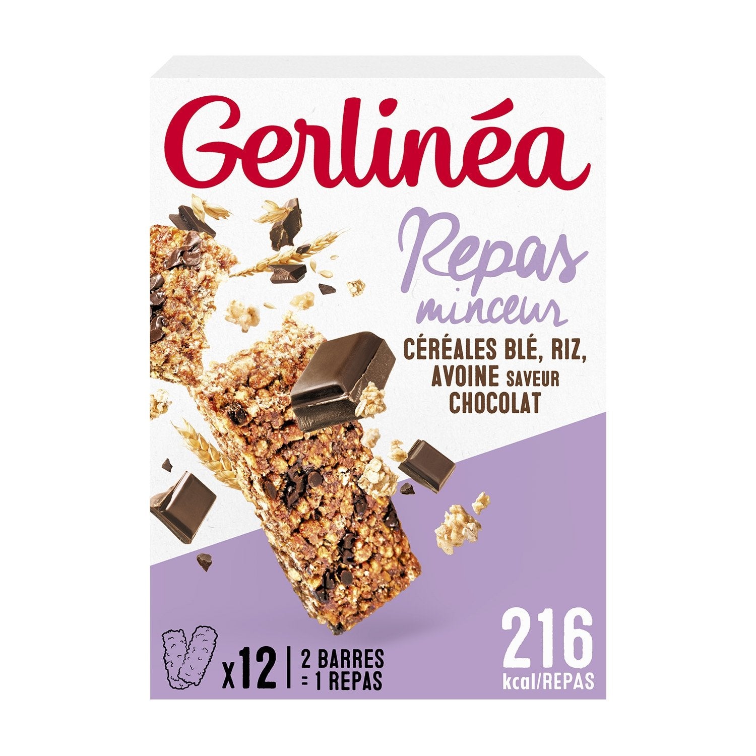 L'alliance parfaite des pépites de chocolat et des céréales à la texture croquante et savoureuse pour un repas équilibré et gourmand. Remplacez un de vos repas par 2 barres Gerlinéa, accompagnées d'un fruit ou d'un laitage. Une portion à 216 calories, riche en protéines et en fibres et source de 13 vitamines et 10 minéraux qui vous permettra de gérer efficacement votre équilibre alimentaire.