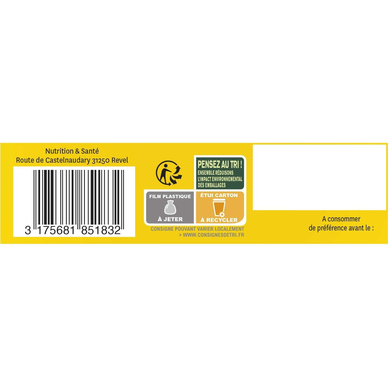 Les informations présentées (ingrédients, valeurs nutritionnelles, conseils d’utilisation, etc.) sont fournies à titre indicatif et peuvent varier selon les approvisionnements. Nous vous invitons à vérifier systématiquement les informations figurant sur l’emballage avant consommation. Photo non contractuelle – l’apparence, le conditionnement ou certains détails du produit peuvent différer de l’illustration. Le design de l'emballage est susceptible d’évoluer.