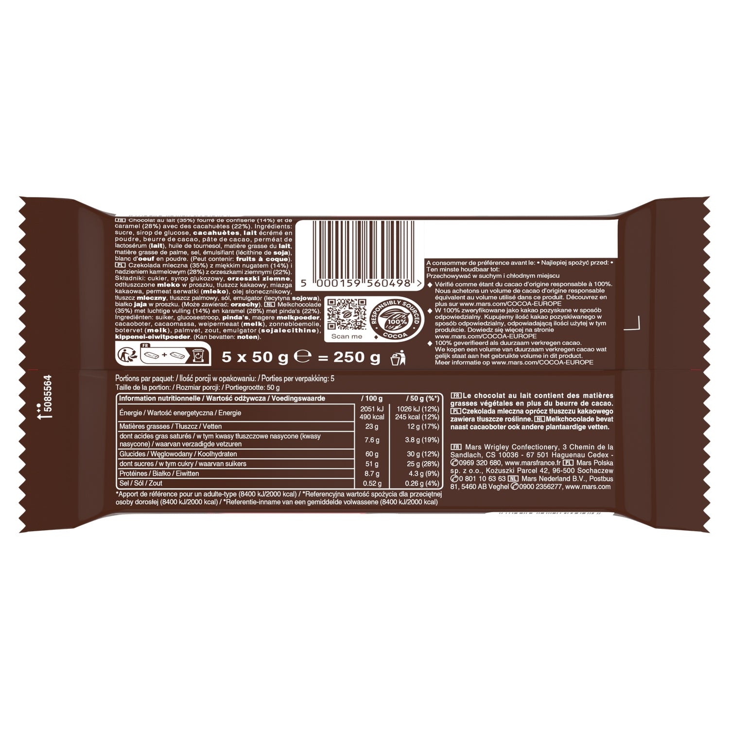 Recouvertes de délicieux chocolat au lait, les barres Snickers® sont composées de cacahuètes grillées, d'un délicieux nougat et d'un caramel fondant.
