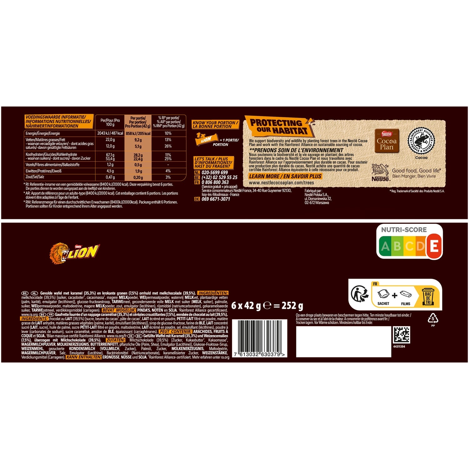 La barre chocolatée LION est la barre idéale pour s'accorder une pause gourmande ! Des céréales de blé extra croustillantes nappées d'un caramel fondant et d'un bon chocolat au lait pour vous faire rugir de plaisir ! Aujourd'hui elle existe en plusieurs formats et au goût Peanut*. *Cacahuète.