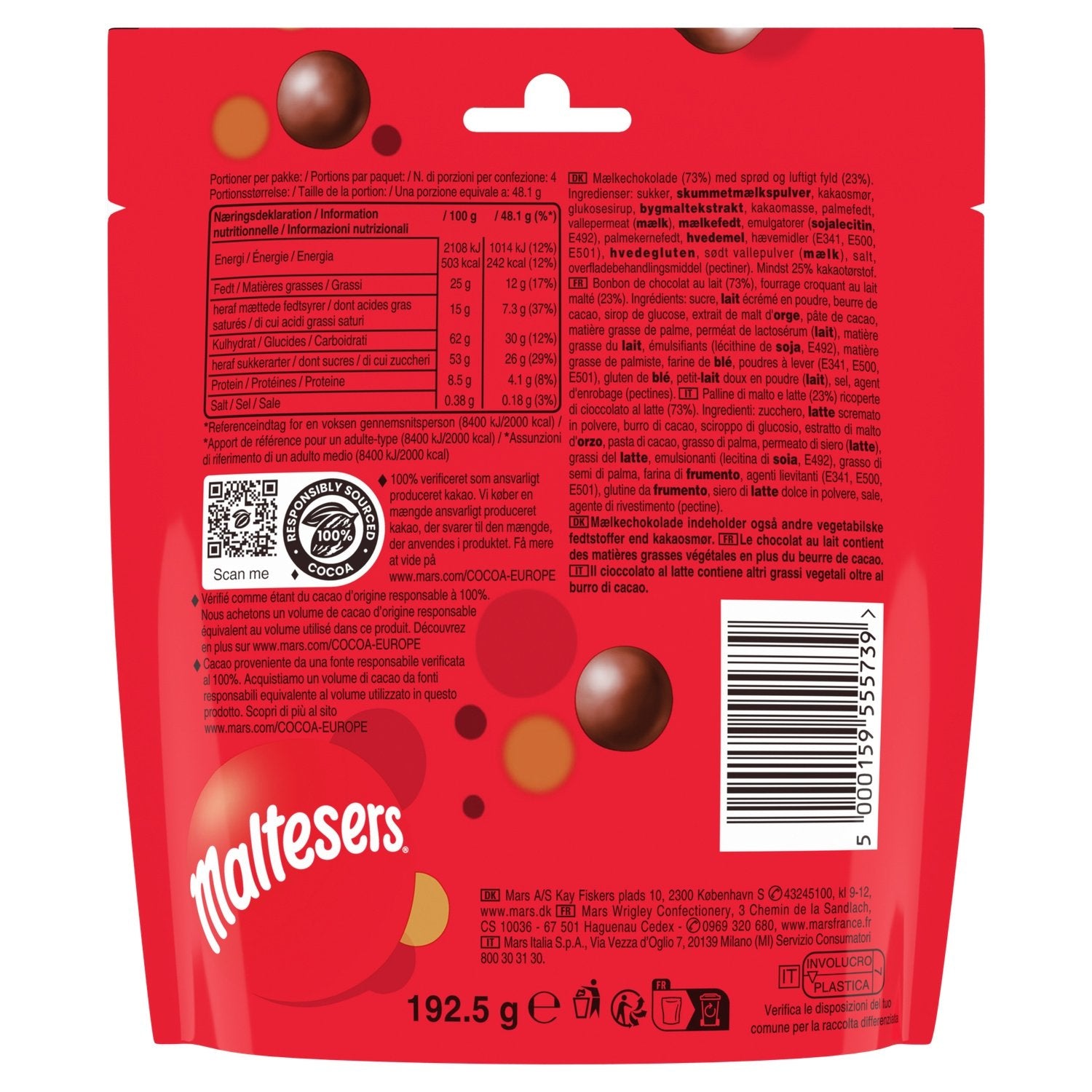 Maltesers, bille croquante enrobée de chocolat au lait - pochon - 192,5G
