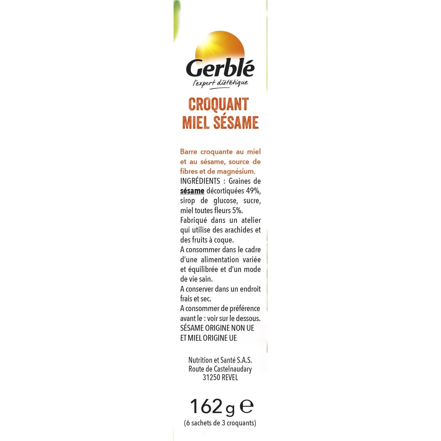Graines de SESAME décortiquées 49%, sirop de glucose, sucre, miel toutes fleurs 5%. Fabriqué dans un atelier qui utilise ARACHIDES, FRUITS A COQUE