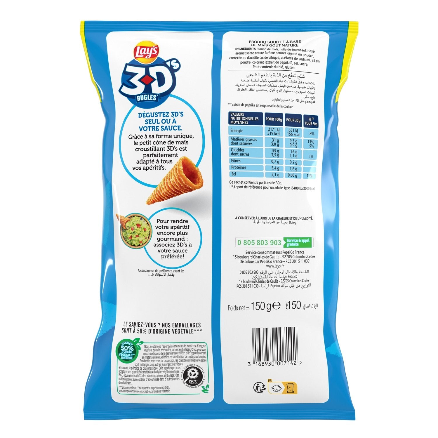 LAY'S 3D BUGLES SAVEUR NATURE, UN SNACK GOURMAND : De délicieux cônes de maïs croustillants. Le biscuit soufflé salé qui convient à tous les goûts ! LE BISCUIT SOUFFLÉ PARFAIT POUR L'APÉRO : Pour plus de gourmandise et saveurs, plongez Lay's 3D's dans votre sauce préférée : guacamole, fromage frais, tzatzíki, … c'est l'assurance d'un apéritif réussi ! DES SNACKS POUR SAVOURER CHAQUE MOMENT DU QUOTIDIEN : Pour l'apéritif, lors d'un pique-nique, à un barbecue d'été ou sur le pouce pour compléter un sandwich : Lay's 3D vous accompagne à chacun de ces moments avec ses biscuits apéritifs aux saveurs délicieuses !