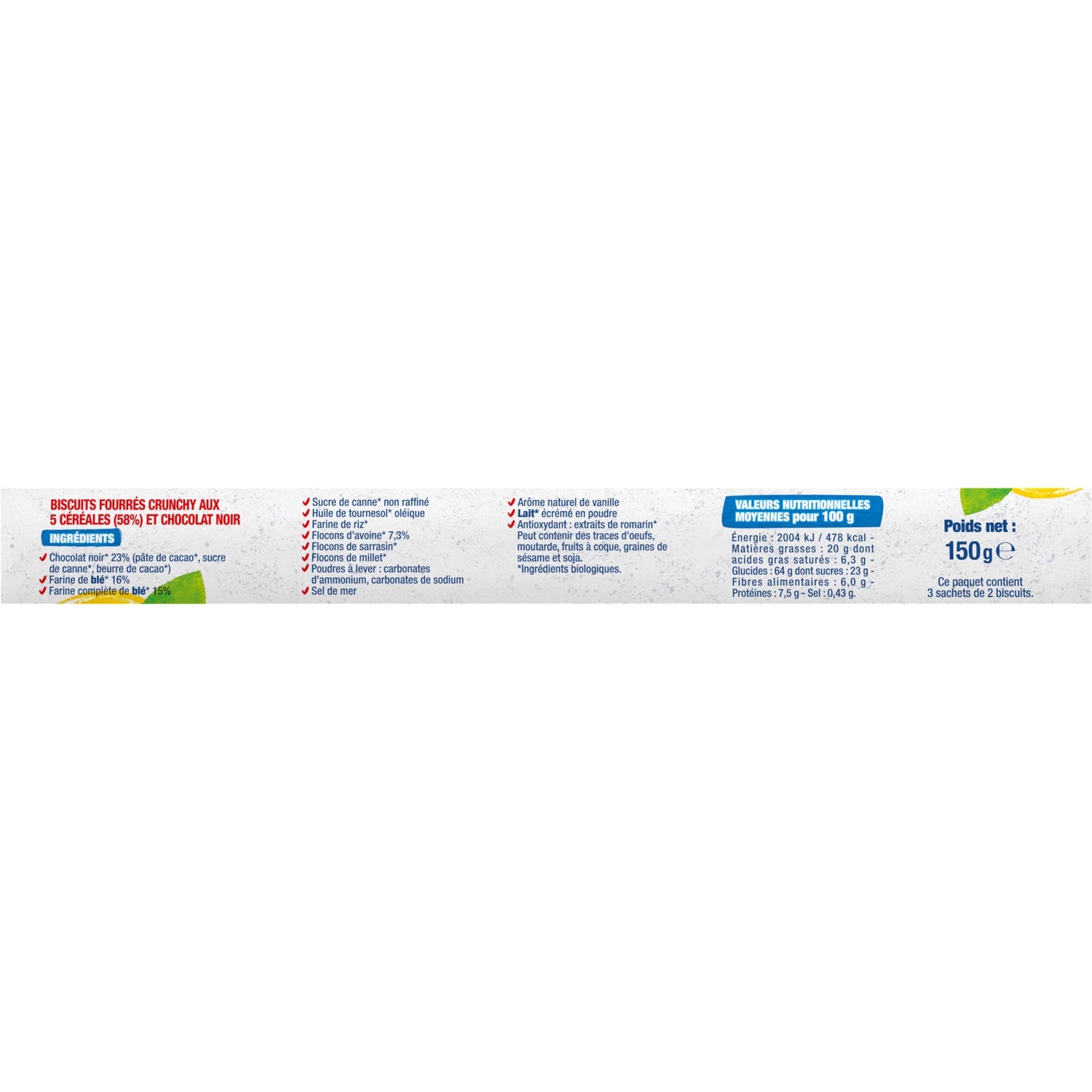 Biscuits fourrés crunchy aux 5 céréales (58%) et chocolat noir