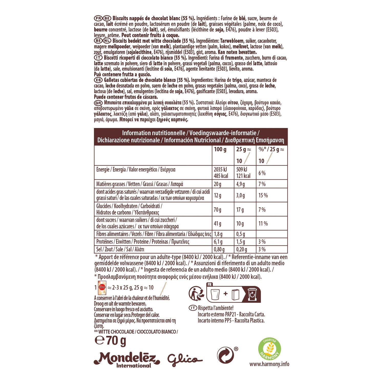 BISCUITS NAPPÉS DE CHOCOLAT BLANC (55%).