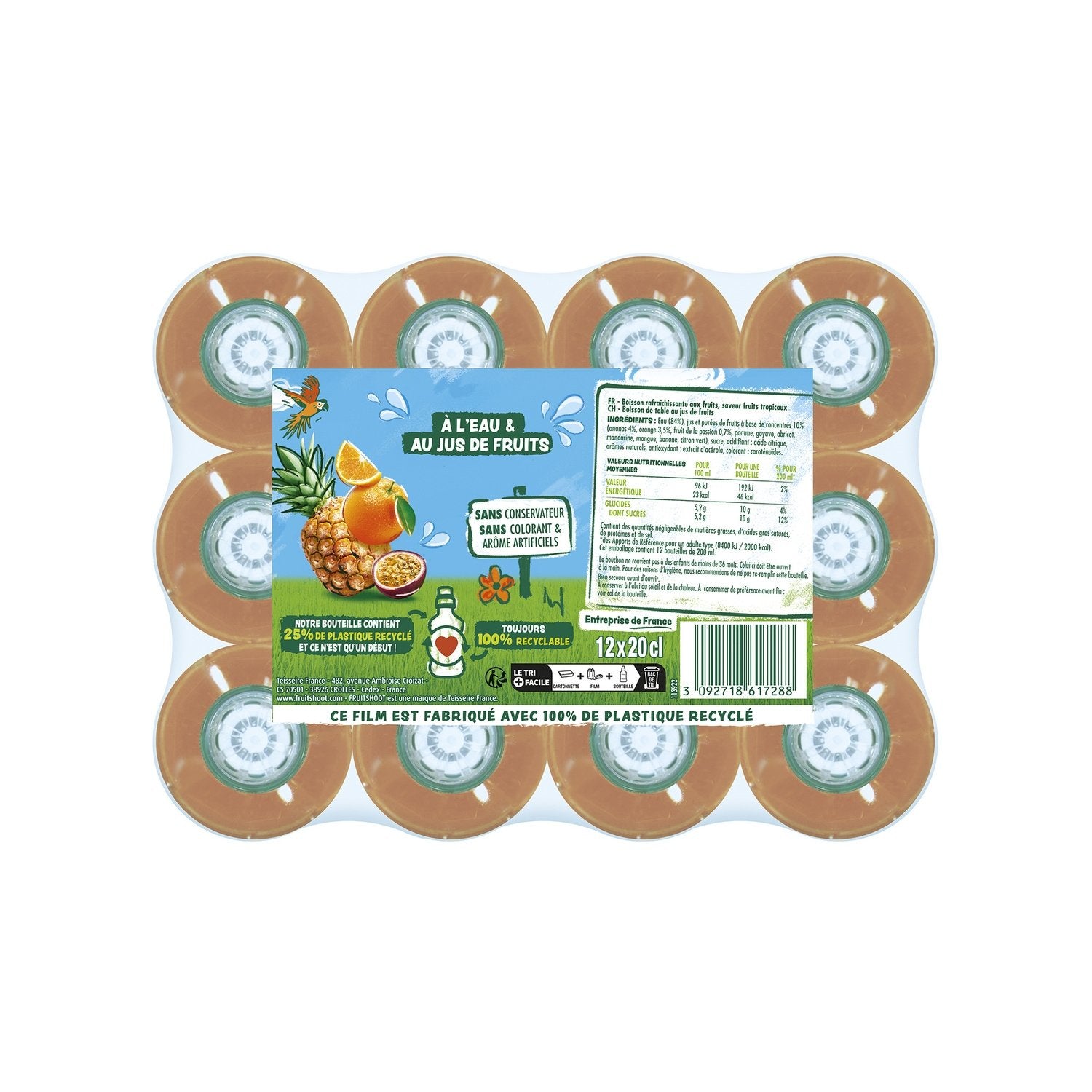 100% INGRÉDIENTS D'ORIGINE NATURELLE: sans arôme et colorant artificiels et sans conservateur PLAISIR 100% FRUITÉ: Fruit Shoot Tropical est une boisson à l'eau et au jus de fruit qui allie les saveurs de délicieux fruits tropicaux comme l'ananas, le fruit de la passion, l'orange et la goyave pour une expérience fruitée et rafraîchissante FORMAT POCKET IDÉAL POUR LES ENFANTS: une petite bouteille 100% recyclable adaptée aux mains des enfants à emporter partout pour le goûter et les activités