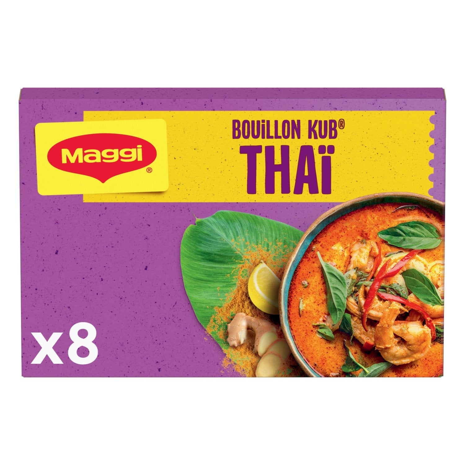 Le Bouillon Thaï MAGGI® apporte une délicieuse note cuisinée et exotique à toutes vos préparations : soupes, woks, nouilles asiatiques ou poêlées de légumes.,Des ingrédients de qualité pour un produit simplement bon et riche en goût !,Inutile de saler.,Bouillon 100% végétal .(ne contient pas d'ingrédient d'origine animale) et sans huile de palme.