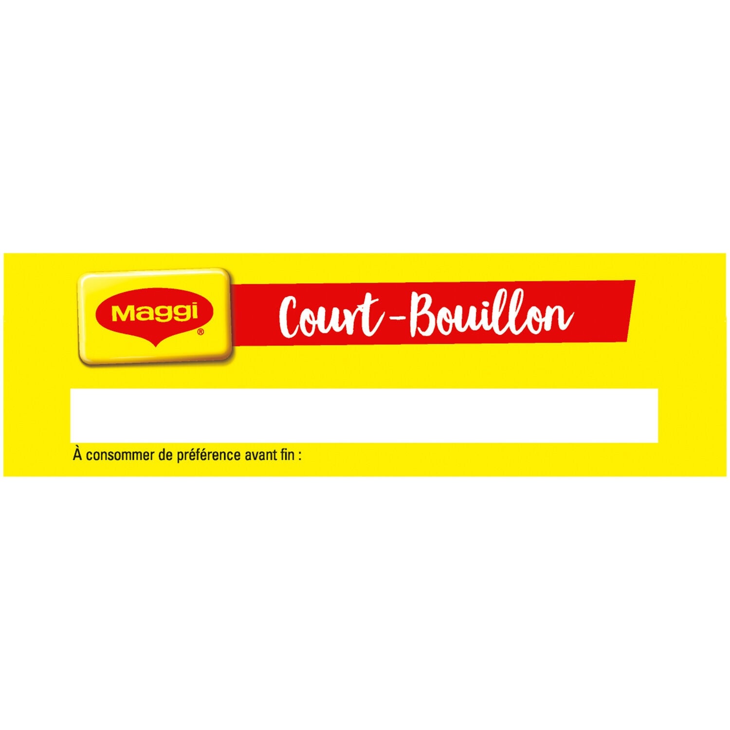 Cube de bouillon pour donner une note délicate et parfumée à vos poissons, coquillages et crustacés,Une préparation rapide et pratique pour sublimer vos plats en un clin d'œil !,Avec de beaux morceaux de légumes, le Court-Bouillon MAGGI vous apportera une cuisson pleine de saveur et faible en matières grasses,Découvrez directement notre idée recette au dos des packs Court-Bouillon MAGGI,Court-Bouillon 100% végétal (ne contient pas d'ingrédient d'origine animale)