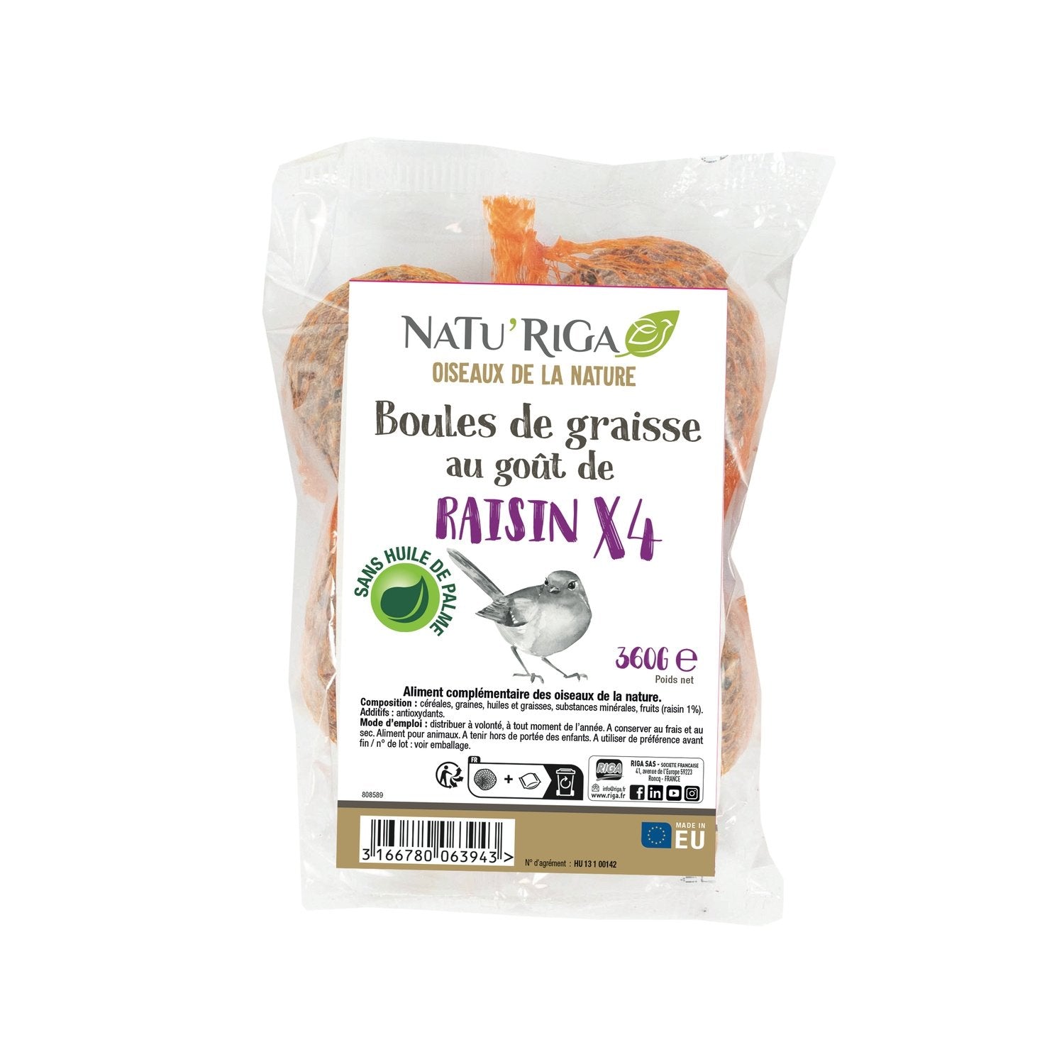 Boules de Graisse pour Oiseaux de la Nature Sans Huile de Palme Raisin NATU'RIGA