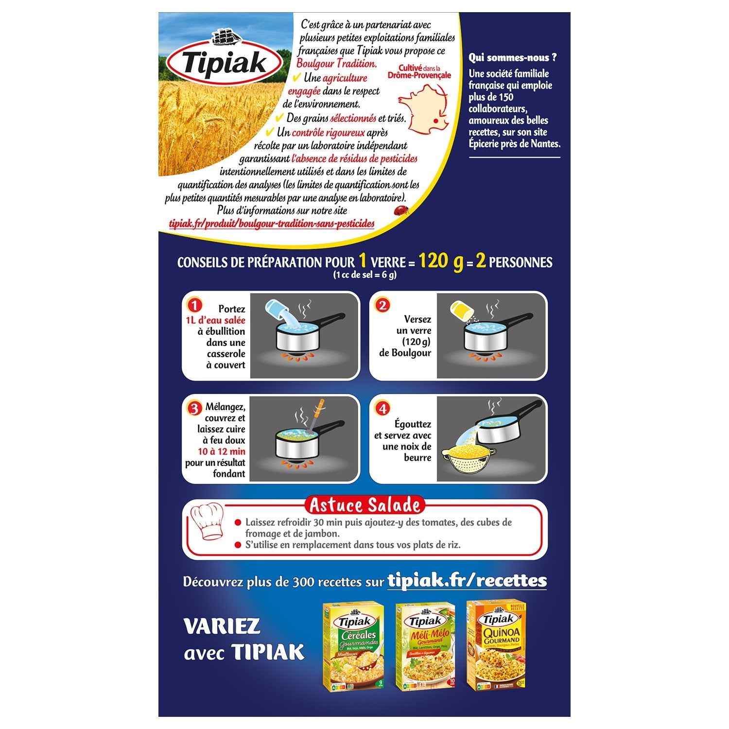 Cultivé en France et garanti sans résidus de pesticides, savourez le Boulgour tendre et fondant Tipiak.