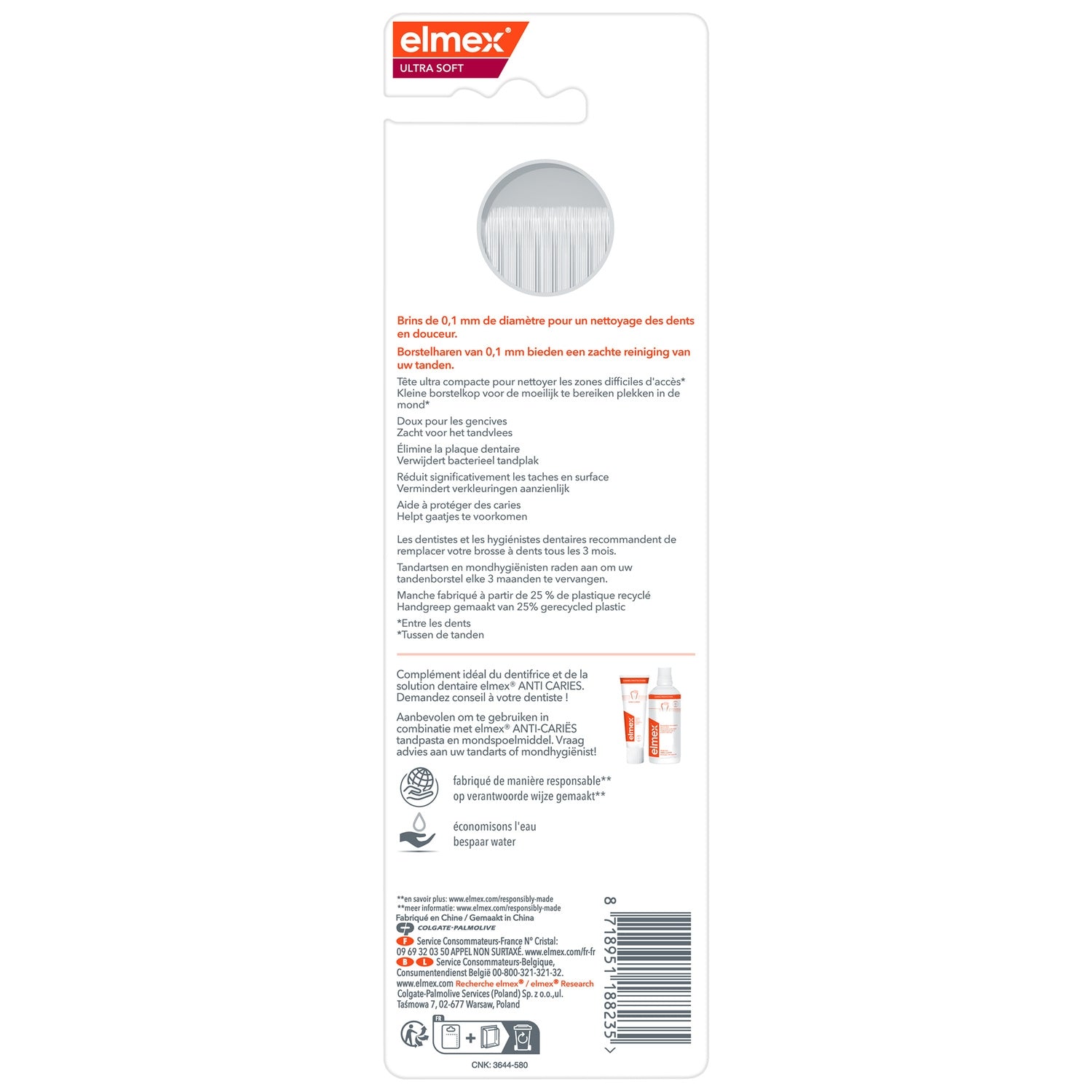 Cette brosse à dents manuelle est dotée de brins de 0,1 mm de diamètre, qui nettoient en douceur les dents et les gencives,Cette brosse à dents souple a une tête ultra compacte qui permet d'atteindre facilement les espaces interdentaires difficiles à atteindre - La brosse à dents aide à éliminer la plaque bactérienne et à prévenir les caries,La brosse à dents souple Elmex Ultra Soft réduit également de manière significative l'apparition des taches afin que vous puissiez avoir un sourire éclatant toute la journée