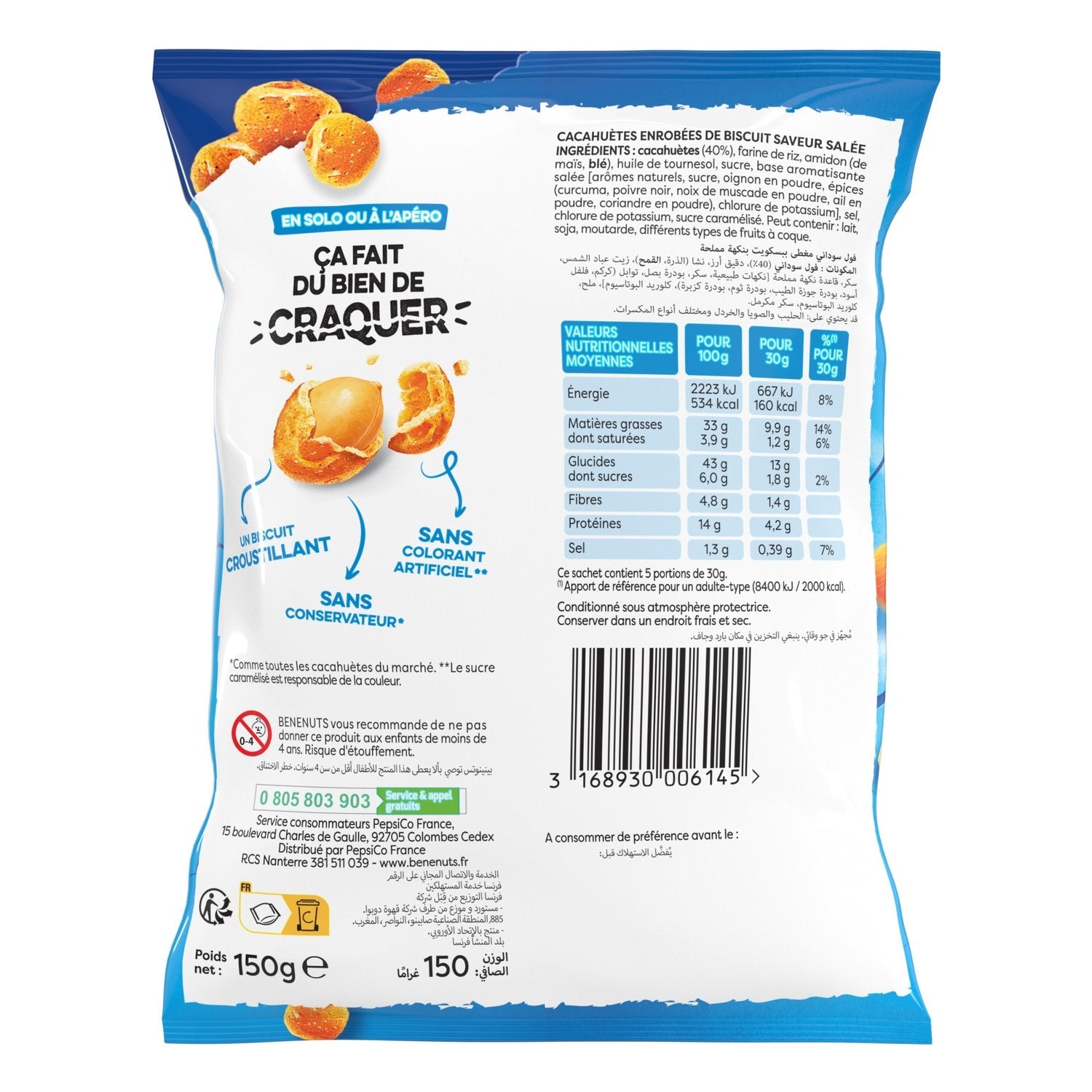 BÉNENUTS TWINUTS GOÛT ORIGINAL, UN SNACK GOURMAND : Une cacahuète croquante avec un goût salé original. TOUTE L'EXPERTISE ET LA QUALITÉ BÉNENUTS : Twinuts, c'est une cacahuète croquante, un parfum gourmand, et une double couche de biscuit croustillant. UNE MARQUE RESPONSABLE : Les cacahuètes Benenuts Twinuts sont sans conservateurs et sans colorants artificiels. BÉNENUTS TWINUTS, L'INCONTOURNABLE DE L'APÉRO : des cacahuètes salées délicieuses à grignoter, un gâteau apéritif idéal pour satisfaire toute la famille !