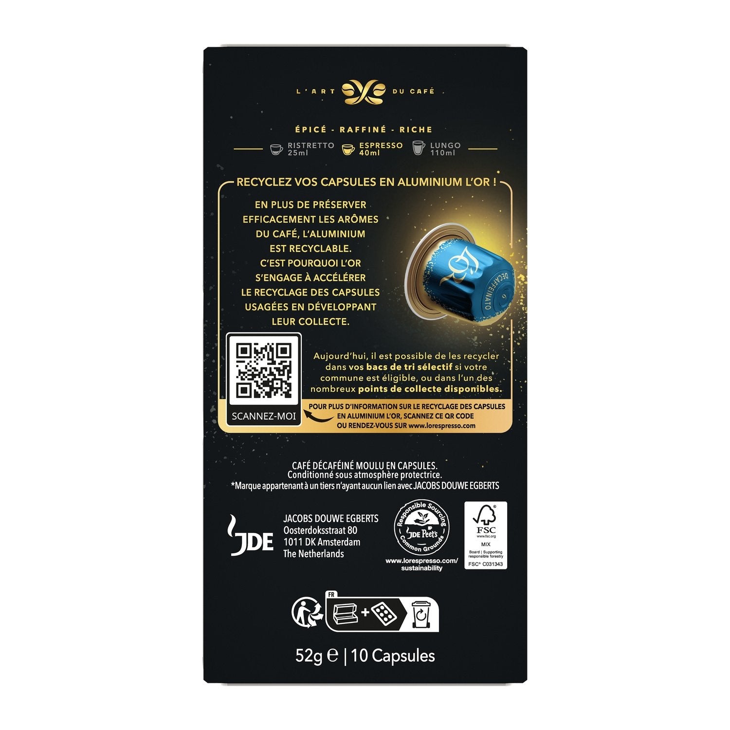 Café Capsules Décaféiné Intensité 6 Compatible Nespresso L'OR