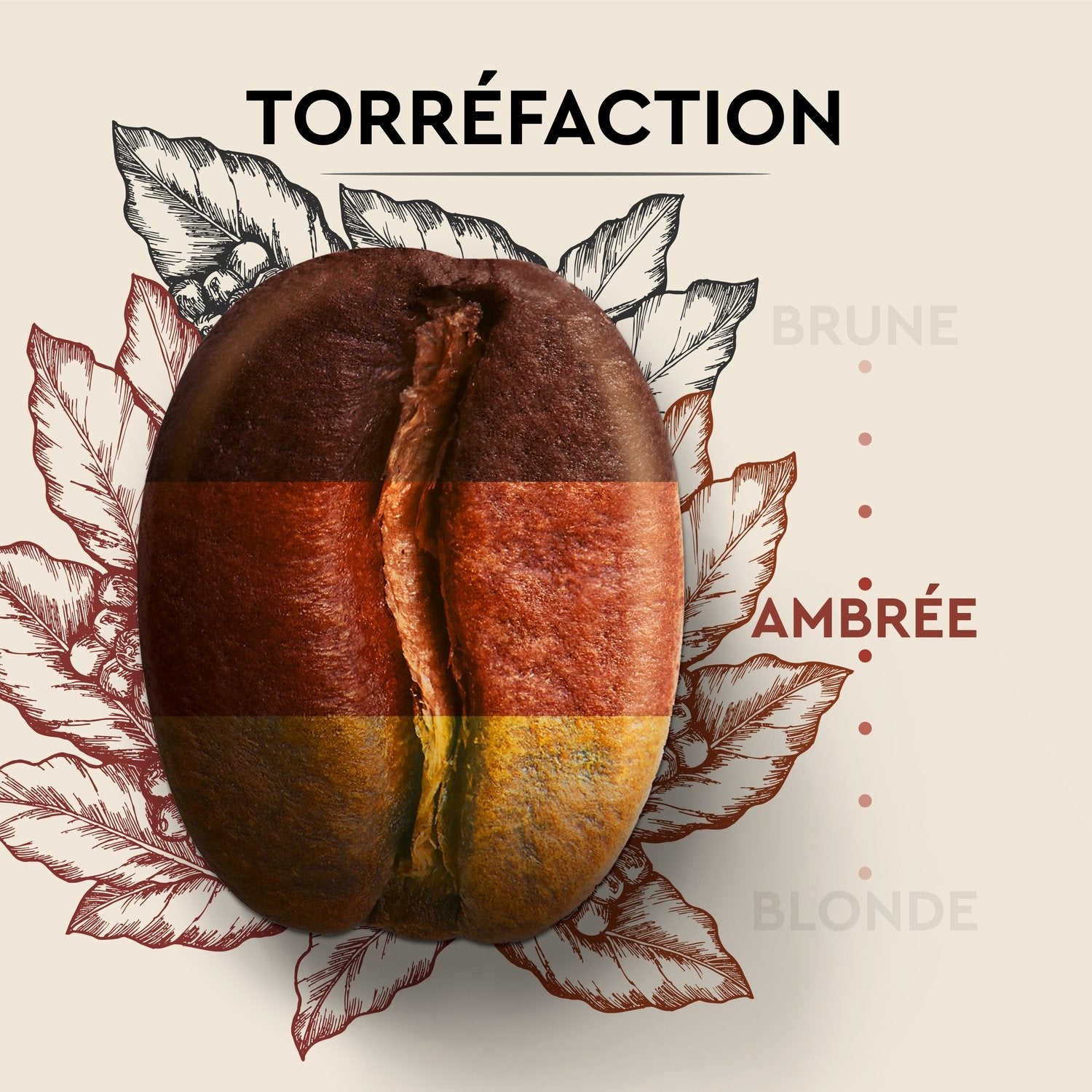 Découvrez Cuvée de Caractère, le nouveau secret de nos maîtres torréfacteurs, composé de 10% de grains lentement fermentés jusqu'à 72 heures. Ces grains de Robusta révèlent des arômes extraordinairement puissants et bonifient cette cuvée riche en Arabica. Aux notes de raisins mûrs et d'amandes, ce café vous offre une intensité de 8 sur 10. Cuvée de Caractère, c'est un rituel hors du temps, pour un café hors du commun.