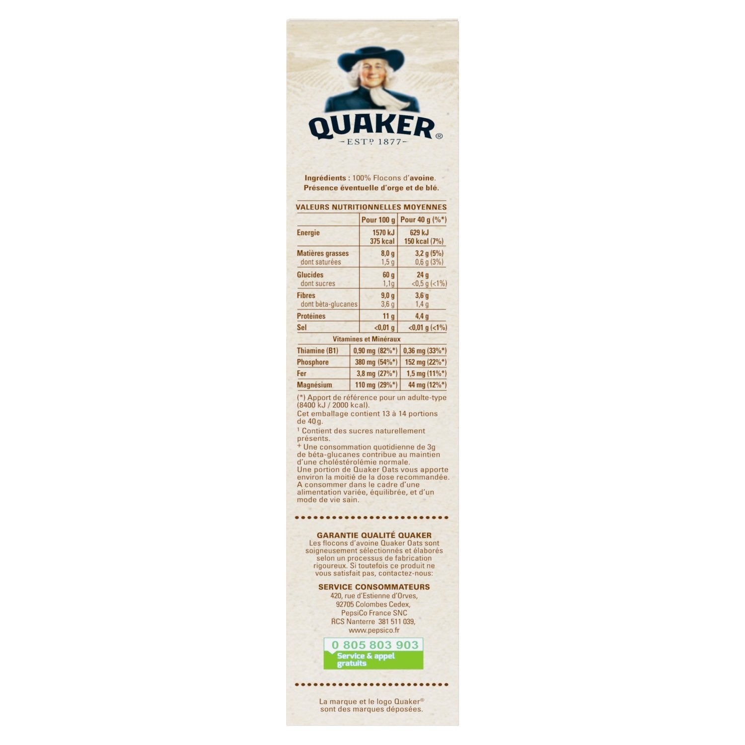 QUAKER OATS, DES FLOCONS D'AVOINE POUR UN PETIT-DÉJEUNER AUTHENTIQUE : Issus d'une sélection minutieuse, les flocons d'avoine Quaker Oats sont garantis haute qualité, 100% naturels et sans conservateurs.