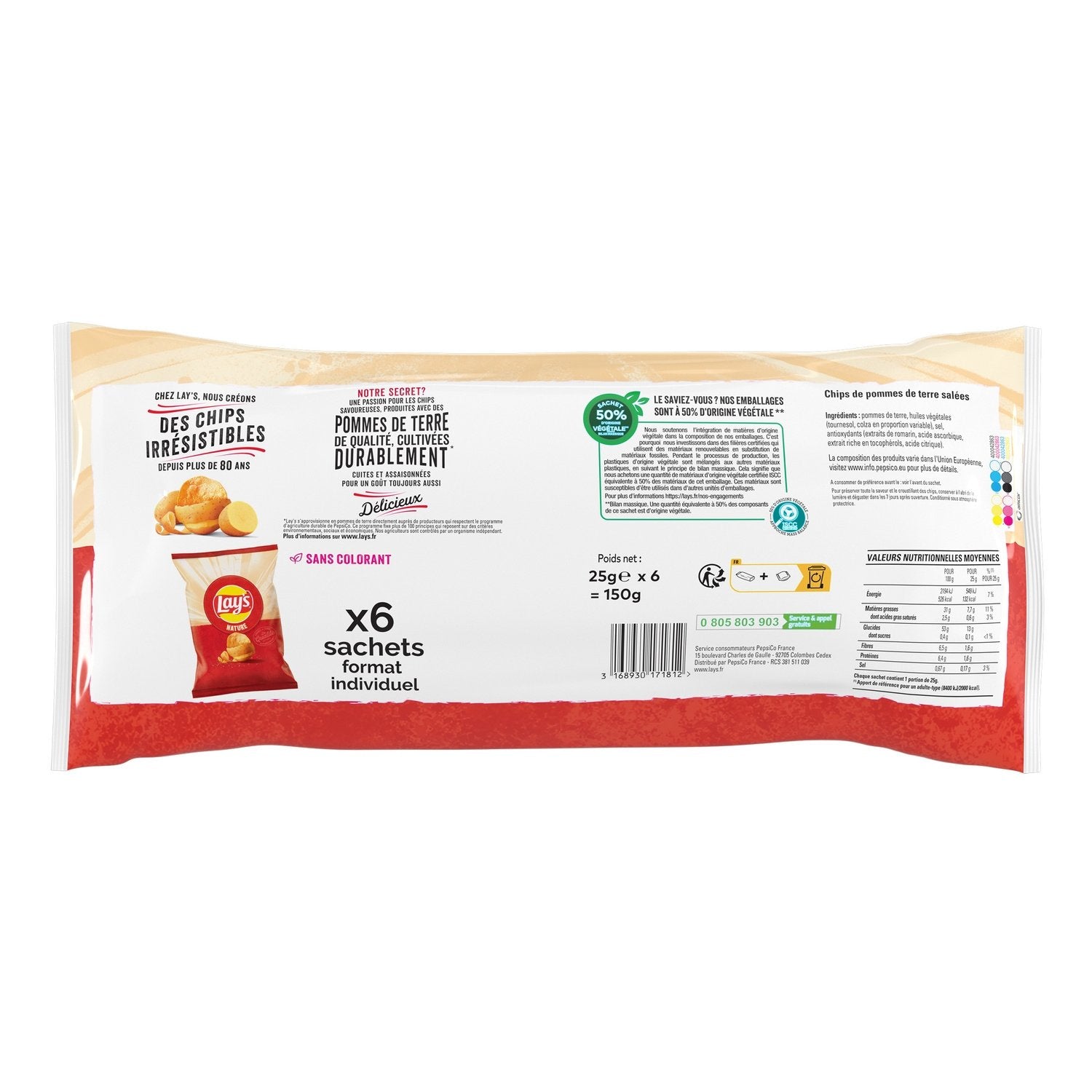 LAY'S NATURE FORMAT INDIVIDUEL : Le premier multipack mélangeant vos chips préférées pour un maximum de plaisir. : Des chips de pomme de terre nature avec juste une pointe de sel. Des chips nature et tellement savoureuses. UNE RECETTE UNIQUE : Tout commence par des pommes de terre cultivées à la ferme, cuites et assaisonnées à la perfection. DES CHIPS AU NUTRISCORE B : Ainsi, chaque chips Lay's est parfaitement croustillante, délicieuse, et délicieuse. Le bonheur à chaque bouchée.