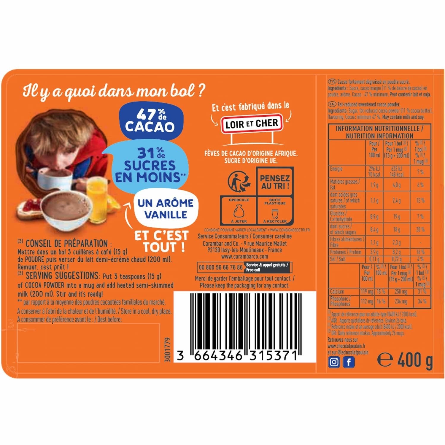 Chocolat en Poudre Grand Arôme Faible Teneur en Sucre POULAIN
