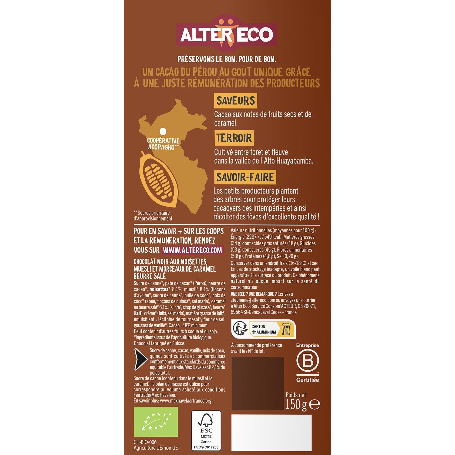 Chocolat Noir Bio Noisettes Muesli Caramel ALTER ECO